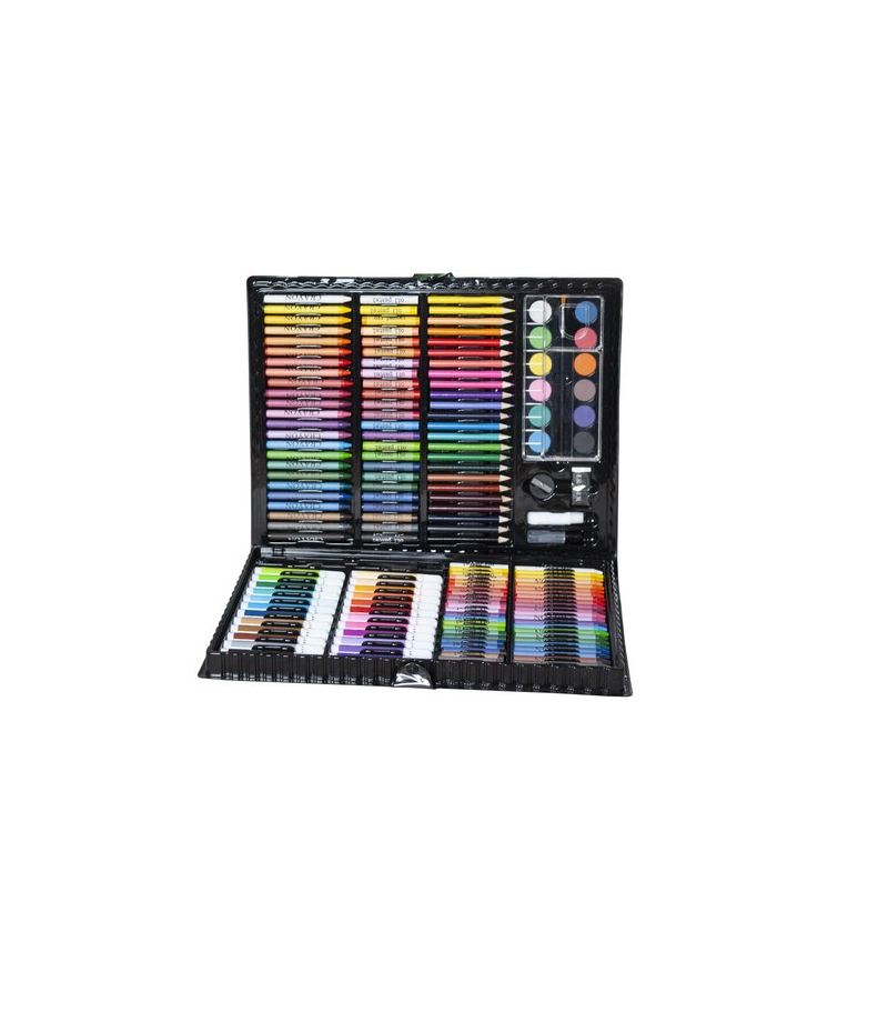 ZESTAW DO MALOWANIA W WALIZCE 168 ELEMENTÓW – przy pomocy ogromnego wyboru 24 kredek, 24 mazaków, 48 pasteli olejowych, 48 pasteli świecowych, 12 farb akwarelowych, temperówki, kleju, korektora, ołówka, gumki do mazania, kartek a4 z łatwością stworzymy najbardziej wymyślne, kreatywne i oryginalne prace . PRAKTYCZNA WALIZKA – całość umieszczona jest w walizce, dzięki czemu transportowanie pełnej zawartości jest proste i komfortowe ; dodatkowo posiada uchwyt umożliwiający wygodne...
