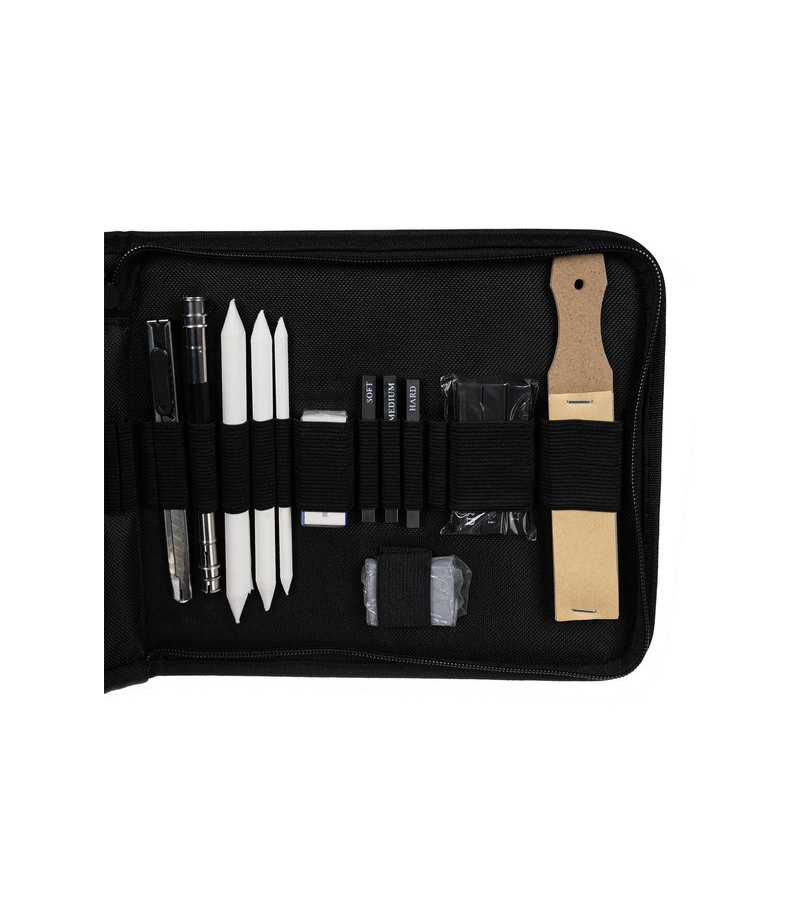 PROFESJONALNY ZESTAW DO SZKICOWANIA 32 ELEMENTY W ZESTAWIE ETUI – cały zestaw jest zamknięty w eleganckim materiałowym etui. Jego czarny kolor sprawdzi się zarówno dla kobiety jak i mężczyzny. Dzięki gumkom zabezpieczającym, każdy produkt ma swoje miejsce, więc ich przechowywanie i przenoszenie jest łatwe . Całość jest zapinana na zamek. UNIWERSALNE ZASTOSOWANIE - zestaw nadaje się do stosowania w jednakowym stopniu przez osoby starsze, jak i młodsze. Komplet polecany jest...