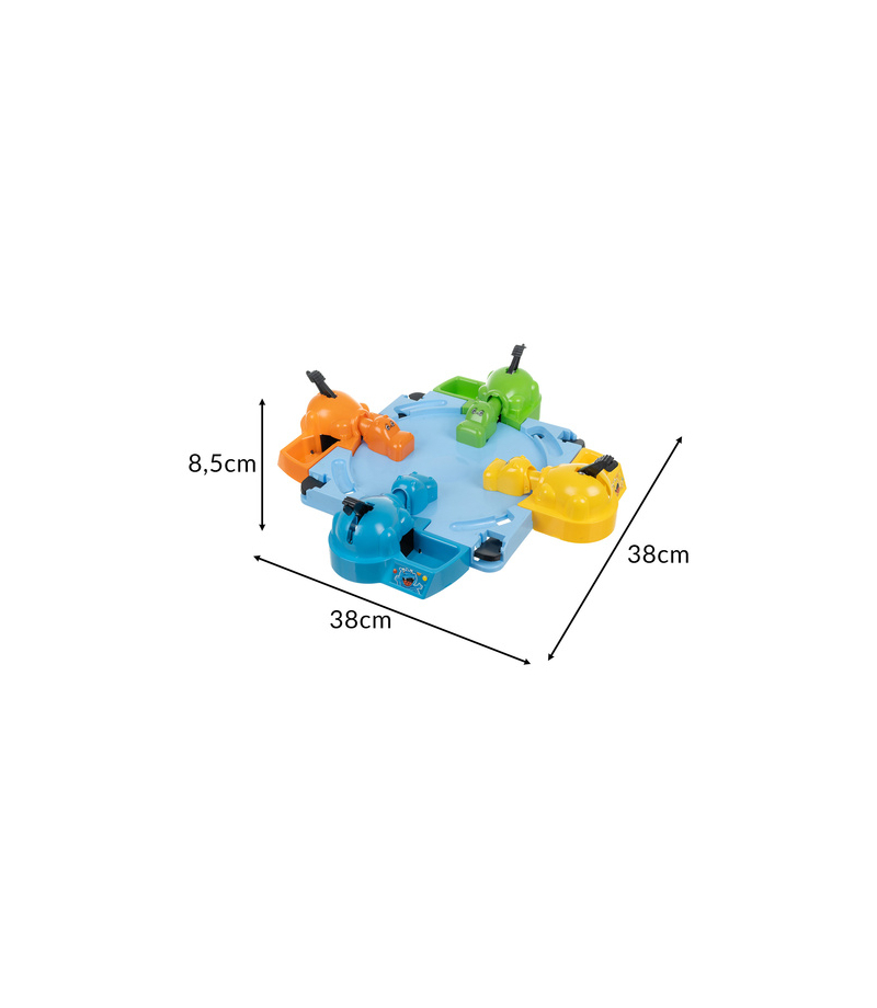 - wygodne sterowanie – każdy hipopotam posiada dużą, ergonomiczną dźwignię, którą łatwo naciskać nawet małym rączkom, dzięki temu zabawa jest komfortowa i pełna emocji, a gra przebiega dynamicznie i bez przerw