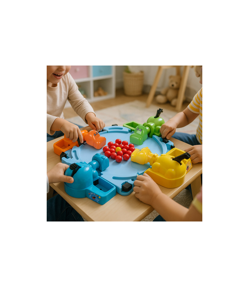 - proste i intuicyjne zasady – gra „Głodne Hipcie” ma bardzo łatwy mechanizm działania: wystarczy naciskać dźwignię, aby hipopotam otwierał paszczę i „połykał” kulki , dzięki temu dzieci szybko rozumieją zasady i mogą cieszyć się zabawą już od pierwszej rundy