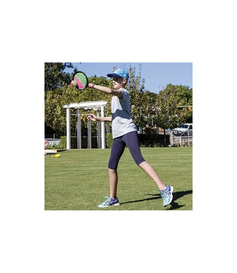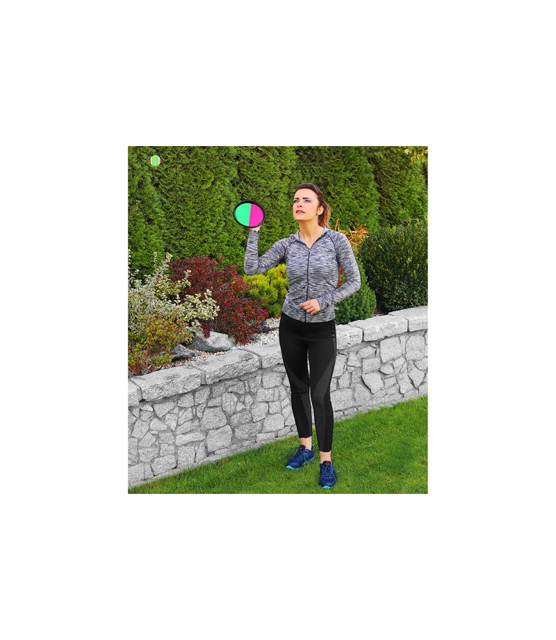 ZESTAW – komplet zawiera 2 okrągłe paletki oraz piłkę, które zapewnią interesującą, radosną i dynamiczną zabawę, jak również dostarczą szereg korzyści dla ciała i umysłu.