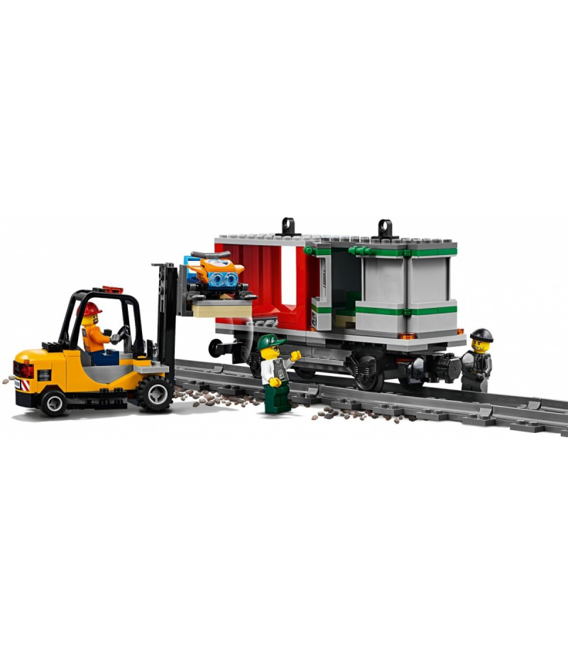 Załaduj towary na potężny pociąg z zestawu LEGO City 60198 Pociąg towarowy i dostarcz je na czas. Ten ciekawy pojazd z serii LEGO City wyposażony jest w silnik z 10-biegowym pilotem Bluetooth, otwieraną kabinę maszynisty, wagon z obracanym i wysuwanym dźwigiem, wagon towarowy z dwoma kontenerami oraz wagon towarowy na drewno. W zestawie jest także wóz opancerzony z otwieranymi drzwiami oraz wózek widłowy z otwieraną klatką bezpieczeństwa i podnoszonymi widłami. Do tego fantastycznego zestawu LEGO dołączony jest okrągły tor składający się z 16 zakrzywionych i 16 prostych fragmentów, a także zwrotnica kolejowa z dźwignią, centrum zarządzania ruchem kolejowym z drabiną, dwie palety do zbudowania z banknotami, sztabki złota, skuter śnieżny oraz sześć minifigurek LEGO.