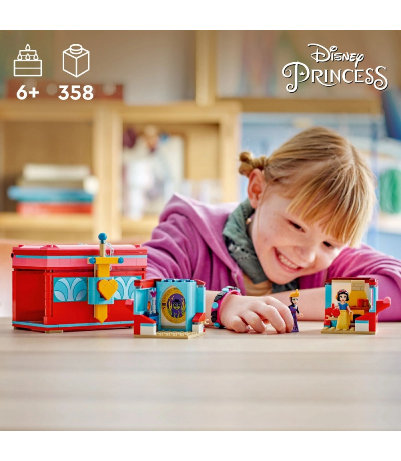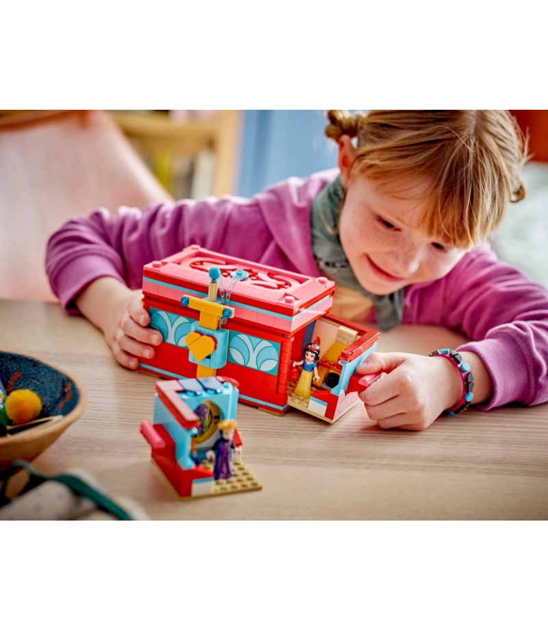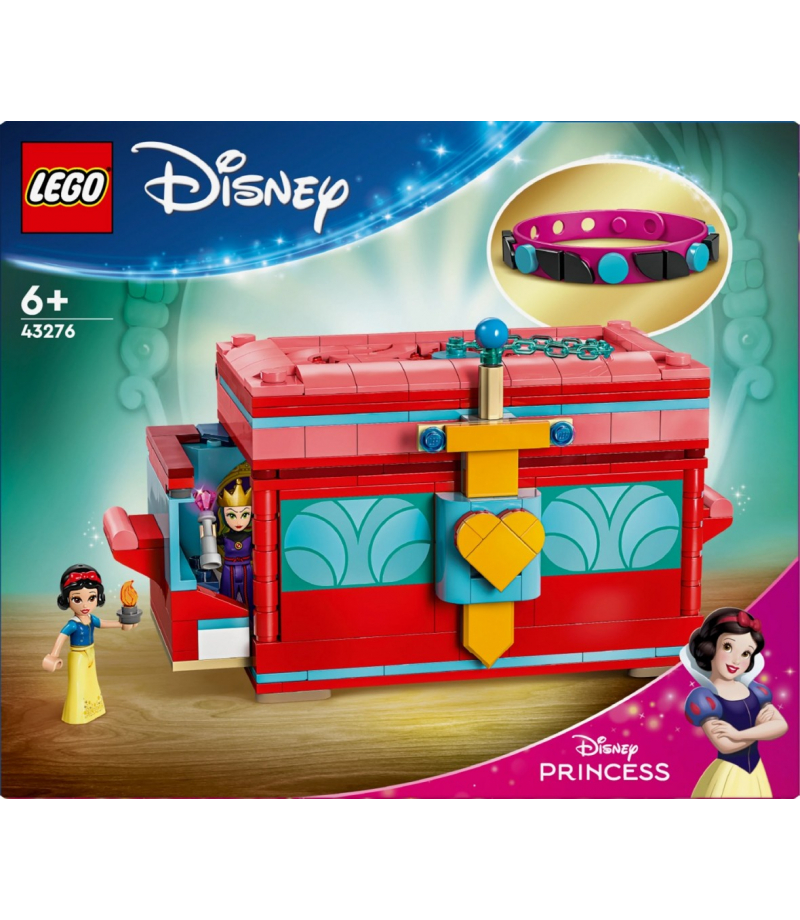 Zaskocz dzieci i fanów Disneya w wieku od sześciu lat wyjątkowym prezentem w postaci zestawu LEGO Disney Szkatułka na biżuterię z Królewną Śnieżką (43276). Zawiera on szkatułkę z otwieranym wieczkiem i uchwytami po obu stronach, które można otworzyć, odsłaniając ukryte pomieszczenia. W środku znajdują się ponadto miecz i łańcuch, minilaleczki LEGO Disney Królewny Śnieżki i Złej Królowej oraz kolorowa bransoletka z mnóstwem elementów dekoracyjnych. Można ją ozdabiać, nosić lub wręczyć komuśbliskiemu.