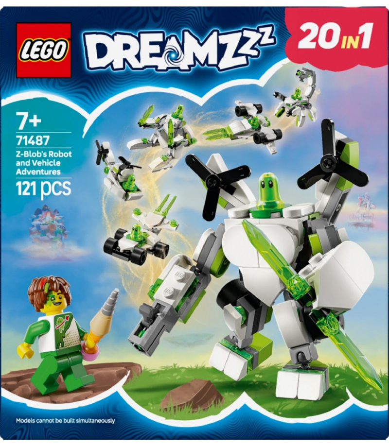 Zestaw konstrukcyjny LEGO DREAMZzz Przygody Z-Bloba roboty i pojazdy (71487) dla chłopców i dziewczynek w wieku od siedmiu lat pobudza dziecięcą wyobraźnię i umożliwia zbudowanie niesamowitych mechów i pojazdów na 20 różnych sposobów.