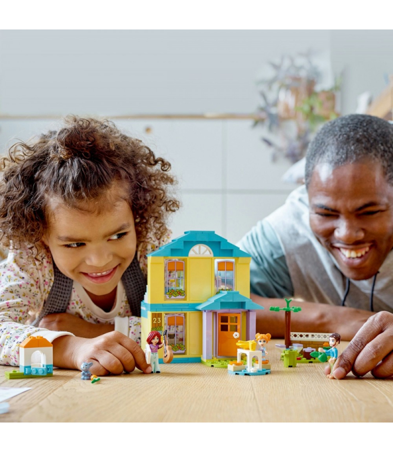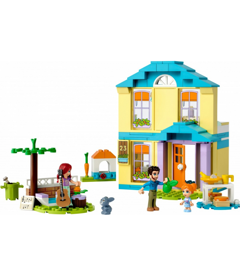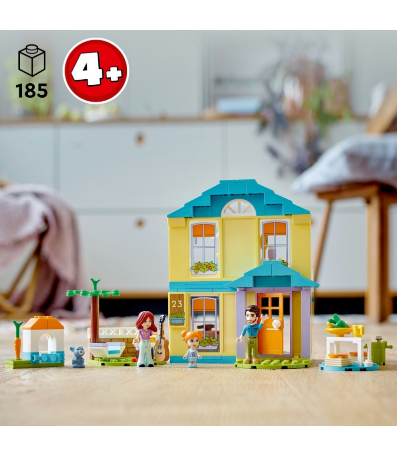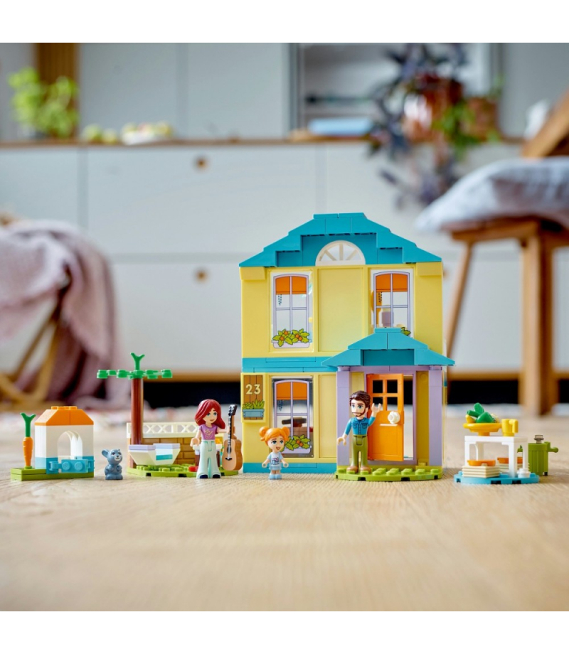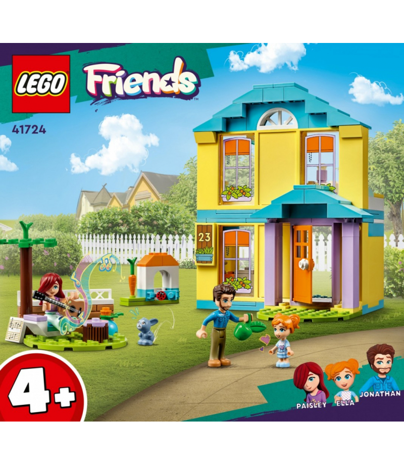Zestaw LEGO Friends Dom Paisley (41724) oferuje wiele do odkrycia dzieciom w wieku od czterech lat. Górne piętro obejmuje sypialnię i łazienkę i jest zdejmowane, aby z łatwością można było zajrzeć do kuchni na dole. Zestaw zawiera akcesoria, w tym przekąski i owoce do jedzenia przy stole na zewnątrz oraz kosze do recyklingu. W ogrodzie znajduje się przytulny kącik, gdzie Paisley gra na gitarze i pisze muzykę w towarzystwie swojego króliczka. Jest tu nawet marchewka, którą można go nakarmić.