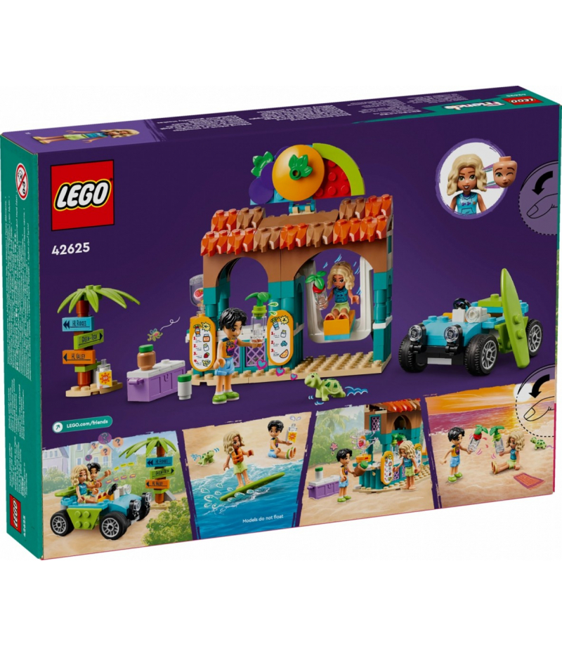 Zainspiruj sześciolatki i starsze dzieci do kreatywnej zabawy dzięki zestawowi LEGO Friends Plażowa budka z koktajlami (42625). Zestaw zawiera budkę z koktajlami do zbudowania, łazik plażowy, a także minilaleczki LEGO Friends Novy i Niko.
