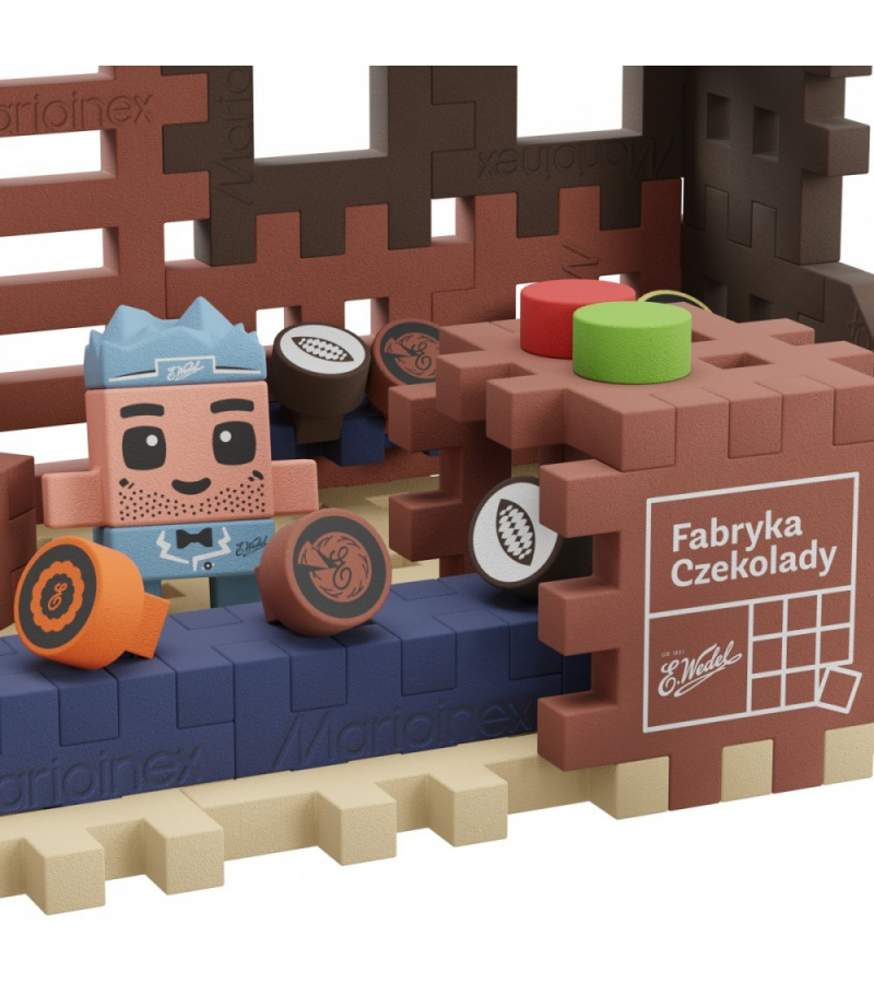 Zbuduj własną fabrykę czekolady Wedla i poznaj proces powstawania tych najpopularniejszych słodyczy od podszewki. Zestaw Fabryka Czekolady pozwoli Ci na zbudowanie fabryki z charakterystycznymi kominami i linią produkcyjną, na której powstają czekoladowe smakołyki. Produkcja nie może odbywać się bez składników: znajdziesz je w specjalnych pojemnikach i wykorzystasz do stworzenia własnych słodyczy. Czekolada, Torcik Wedlowski, a może Twój własny pomysłWszystko zależy od Twojego pomysłu i wyobraźni.