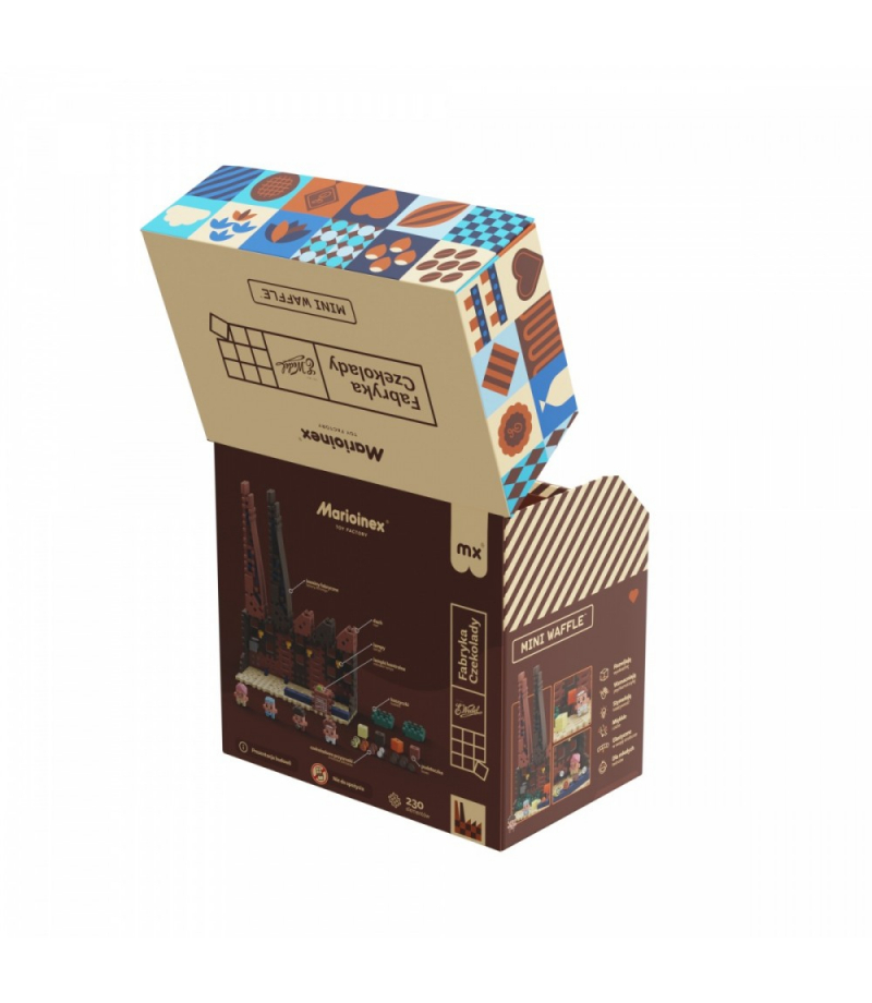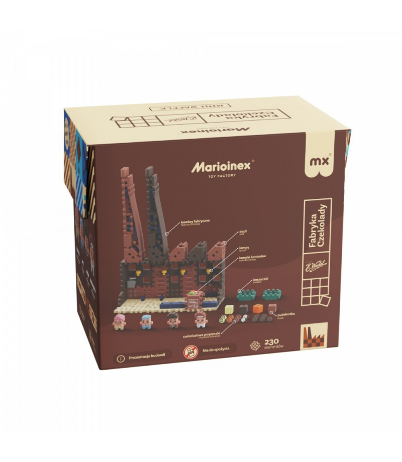Mini Waffle - E.Wedel - Fabryka Czekolady 230 elementów Fabryka czekolady Wedla pracuje pełną parą, żeby dostarczyć słodkości i umilić czas mieszkańcom miasteczka Marioinex! Dołącz do zespołu, który opracowuje recepturę i przygotowuje pyszne, czekoladowe dzieła sztuki. Zbuduj własną fabrykę czekolady Wedla i poznaj proces powstawania tych najpopularniejszych słodyczy od podszewki. Zestaw Fabryka Czekolady pozwoli Ci na zbudowanie fabryki z...