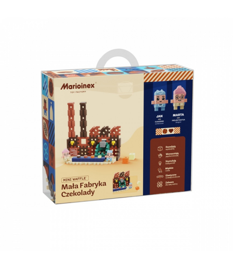 Mini Waffle - E.Wedel - Mała Fabryka Czekolady 100 elementów Fabryka czekolady Wedla pracuje pełną parą, żeby dostarczyć słodkości i umilić czas mieszkańcom miasteczka Marioinex! Dołącz do zespołu, który opracowuje recepturę i przygotowuje pyszne, czekoladowe dzieła sztuki. Zbuduj własną fabrykę czekolady Wedla i poznaj proces powstawania tych najpopularniejszych słodyczy od podszewki. Zestaw Mała Fabryka Czekolady pozwoli Ci na zbudowanie fabryki z...