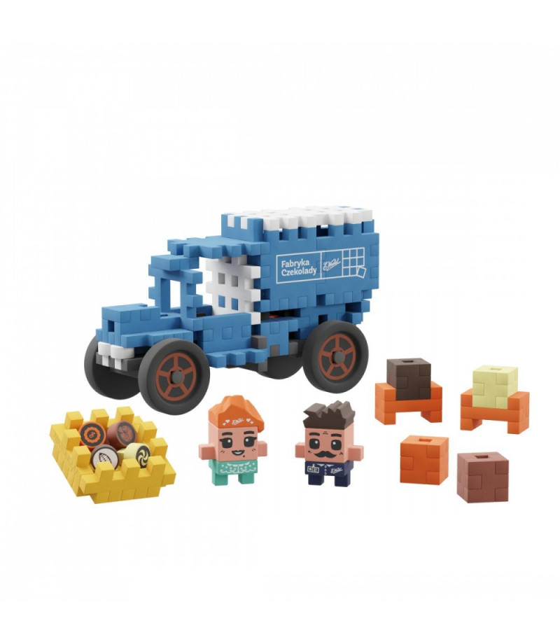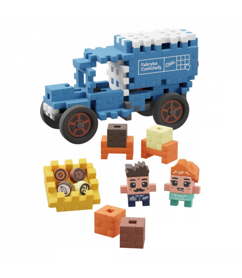 Własnoręcznie zbuduj furgonetkę dostawczą i zasiądź za jej kierownicą wraz z dostawcą Kacprem. Ze 100 elementów wraz ze swoją pociechą stworzycie furgonetkę Wedla, palety i stoisko dla sprzedawczyni Agnieszki. W zestawie znajdziesz także klocki, które są odpowiednikami ulubionych produktów klientów Wedla.