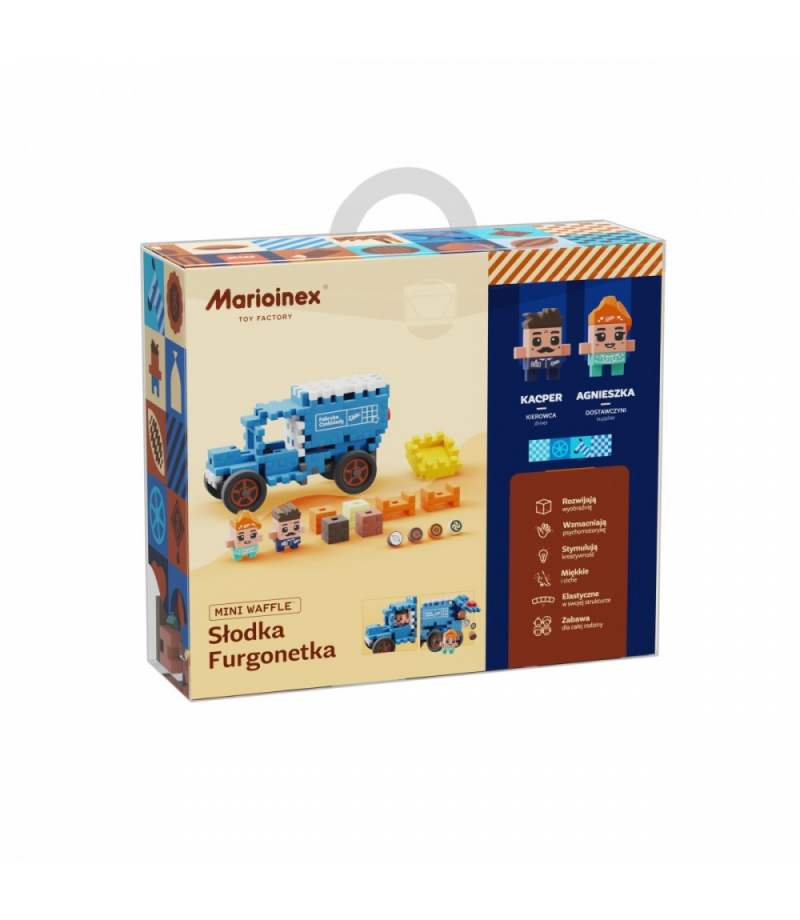 Mini Waffle - E.Wedel - Słodka Furgonetka 100 elementów Dostawca Kacper pakuje składniki i wyroby czekoladowe do furgonetki, by dostarczyć je na czas sprzedawczyni Agnieszki. Pomóż mu wywiązać się z zadania i dostarcz Agnieszce wszystko, czego potrzebuje, by obsłużyć żądnych słodyczy klientów! Dostawy to jeden z kluczowych etapów produkcji czekolady! Zapakuj słodki towar do pojemników, następnie wrzuć je na palety i załaduj do dostawczaka. Pomknij wraz z...