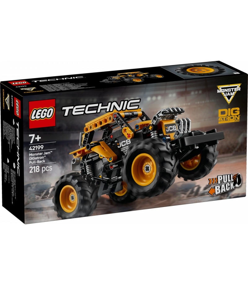 Pojazd dla siedmiolatków i starszych dzieci pozwala im odtwarzać ekscytujące akrobacje w stylu Monster Jam. LEGO Technic Monster Jam DIGatron (42199) ma fajny napęd typu pull-back, dzięki któremu ciężarówka pędzi przed siebie, gdy dzieci odtwarzają oszałamiające sztuczki monster trucków.