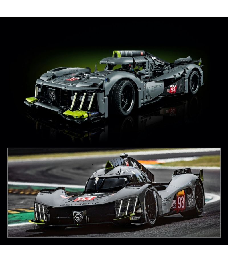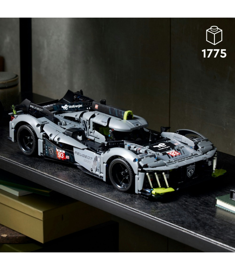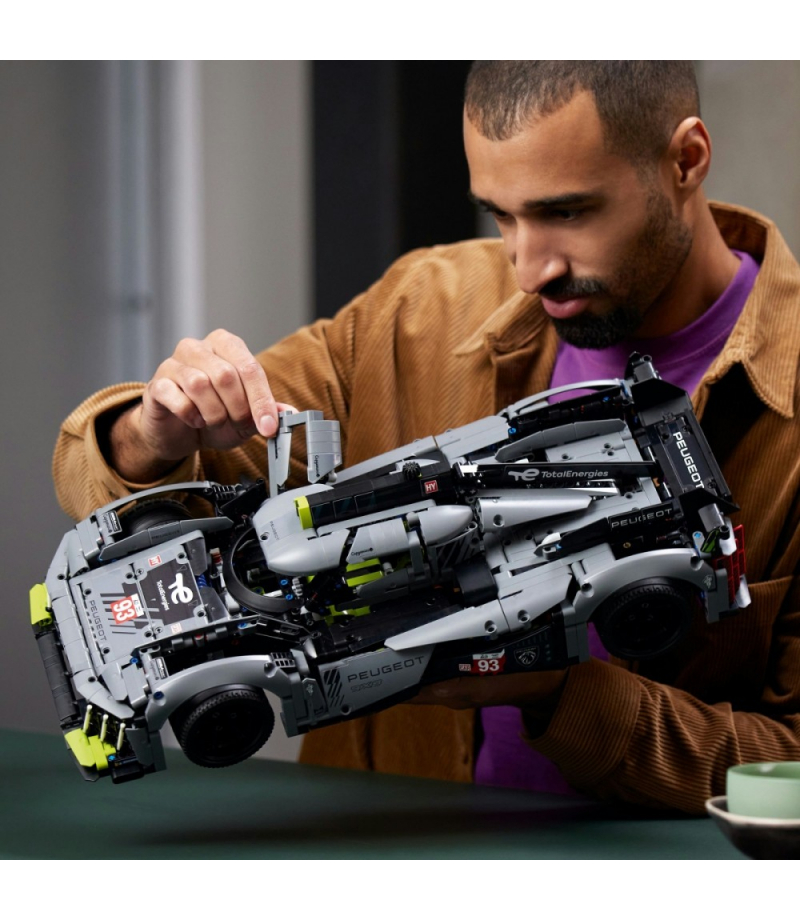 Zbuduj i ustaw na półce szczegółową replikę samochodu wyścigowego, składając zestaw dla dorosłych LEGO Technic PEUGEOT 9X8 24H Le Mans Hybrid Hypercar