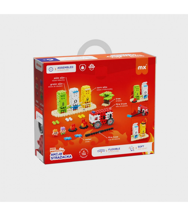 Złóż zestaw według instrukcji lub uruchom wyobraźnię swojego dziecka i skonstruuj z nim własną, unikalną budowlę! Zestaw Akcja strażacka łączy naukę logicznego myślenia przestrzennego z niepowtarzalną zabawą w strażaków. To także świetna okazja na edukację - naukę numerów alarmowych i poszerzanie wiedzy dotyczącej zachowania się w warunkach zagrożenia pożarem.