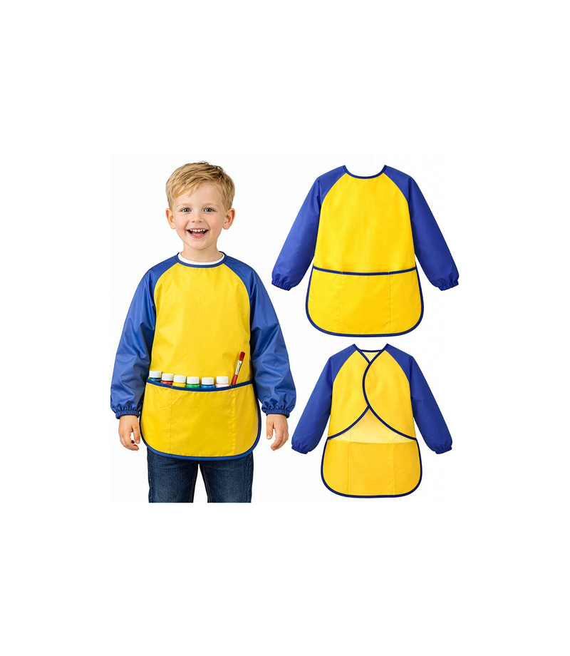 Fartuszek ochronny do malowania dla dzieci KRUZZEL wodoodporny z rękawami 110 - 135 cm / 5 - 9 lat Każde dziecko powinni bawić się swobodnie bez ciągłego „uważaj, nie pobrudź się”. Fartuszek ochronny dla dzieci KRUZZEL został stworzony po to, aby mali artyści mogli malować, rysować i eksperymentować bez ograniczeń. To codzienny komfort, spokój i więcej radości z kreatywnej zabawy - w domu, przedszkolu i kuchni. Najważniejsze zalety fartuszka KRUZZEL skuteczna ochrona...