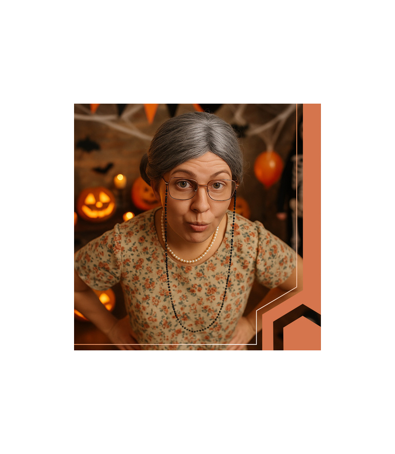 Klasyczny zestaw w stylu babci z siwą peruką w kok, okularami na łańcuszku i perłowym naszyjnikiem to gotowe przebranie, które doskonale sprawdzi się na Halloween, balu przebierańców czy scenicznych występach. Uniwersalny rozmiar i lekka konstrukcja zapewniają wygodę noszenia, a charakterystyczny wygląd natychmiast wywołuje uśmiech i przyciąga uwagę – idealny wybór na imprezy z przymrużeniem oka.