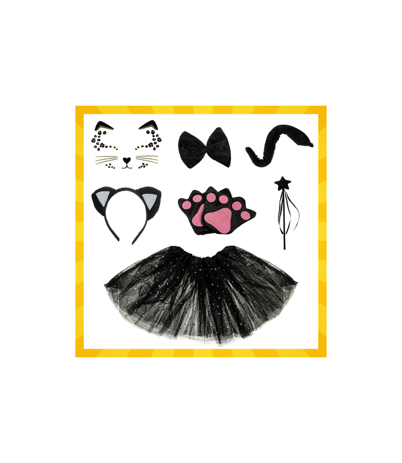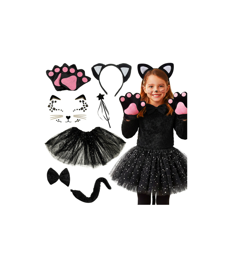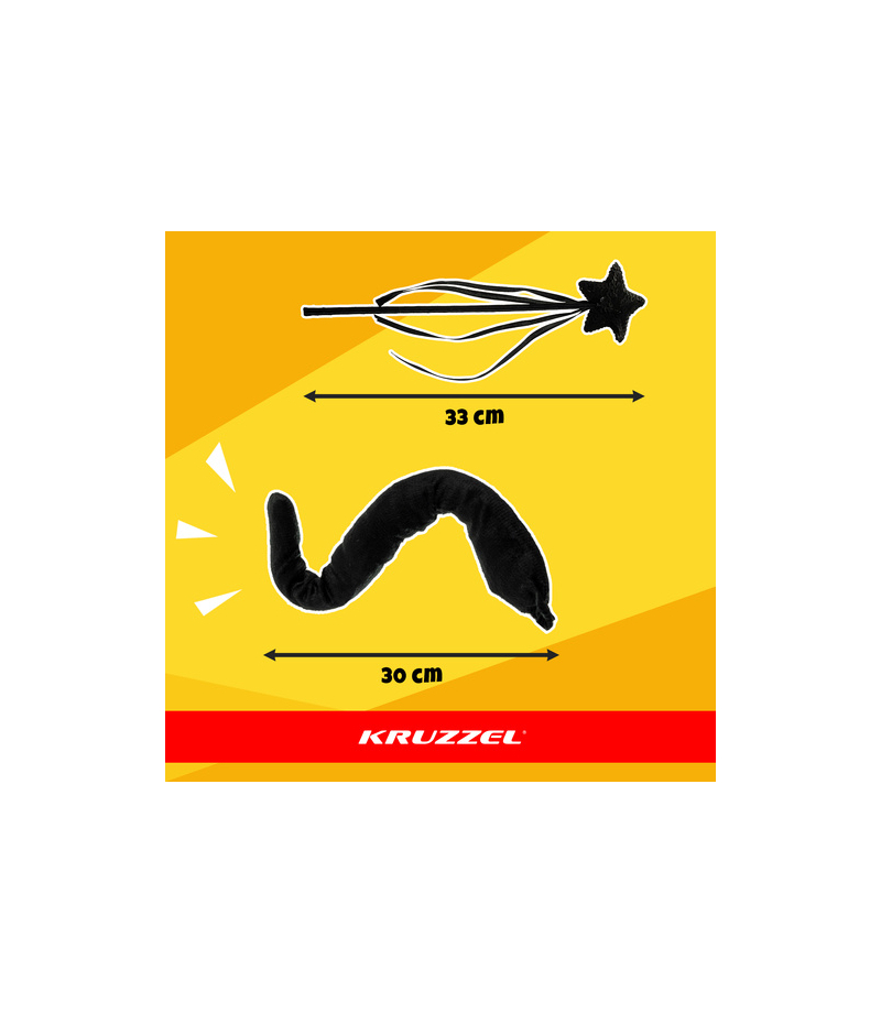 - kompletny zestaw - kostium składa się z aż 7 elementów : spódniczka, naklejki samoprzylepne na twarz, opaska, różdżka, kocie łapki, ogon i muszka – wszystko, czego potrzeba do stworzenia pełnej stylizacji