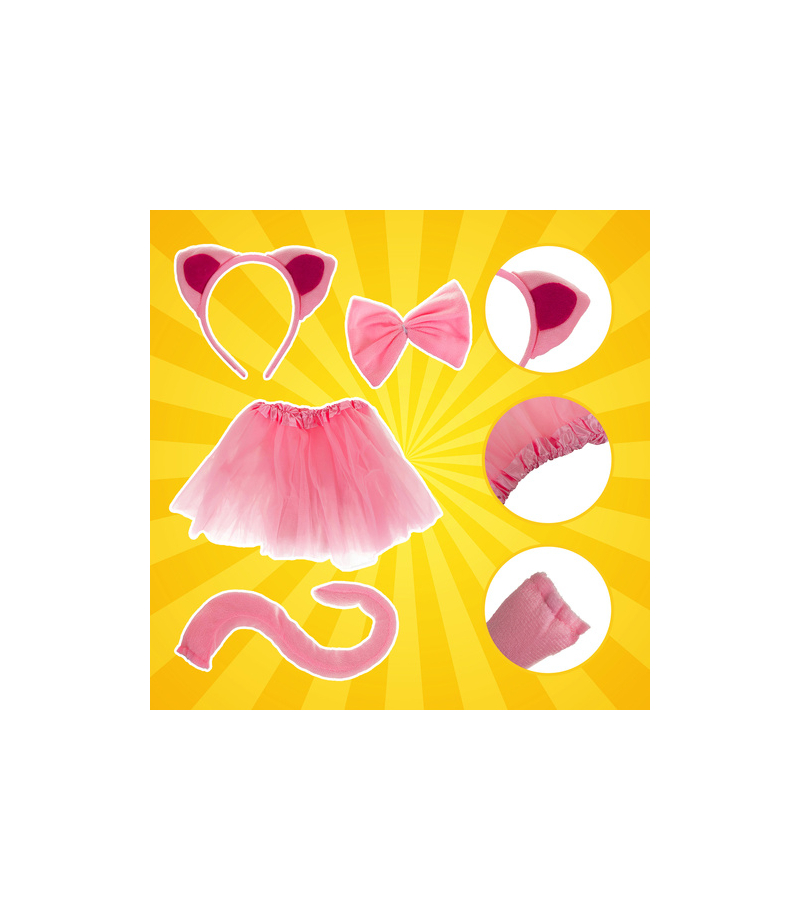 - kompletny zestaw - kostium składa się z aż 4 elementów : spódniczka, opaska, ogon i muszka – wszystko, czego potrzeba do stworzenia pełnej stylizacji