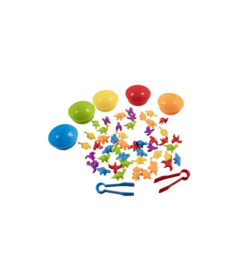 Zachęć swoje dziecko do nauki kolorów i liczenia poprzez zabawę polegającą na rozdzielaniu małych figurek do miseczek z odpowiednim kolorem. Wyzwanie polegające na rozdzieleniu elementów za pomocą pęsety pomoże rozwinąć umiejętności Twojego dziecka.