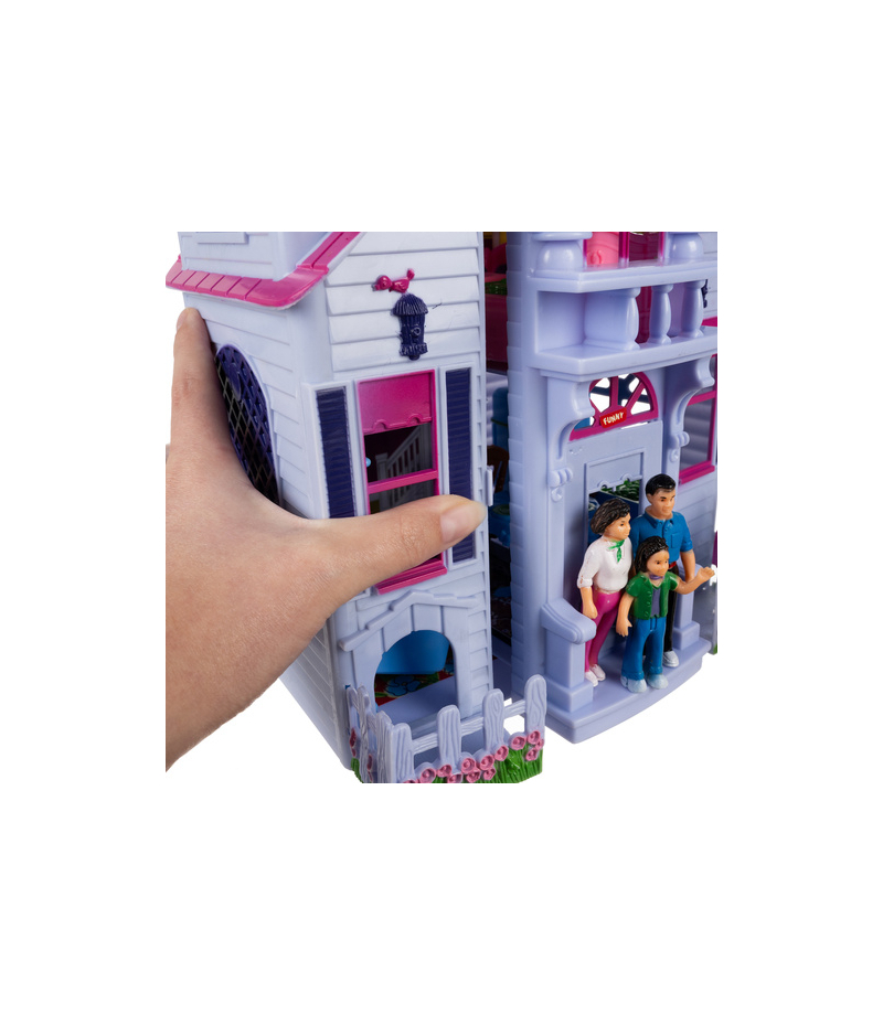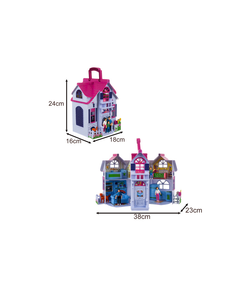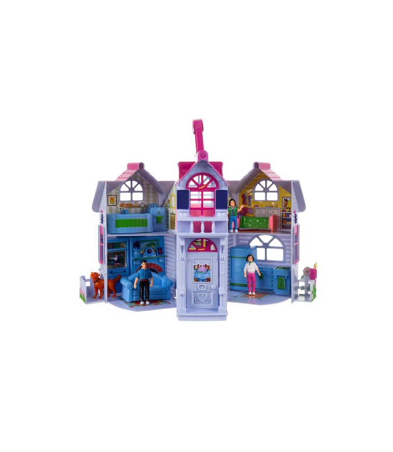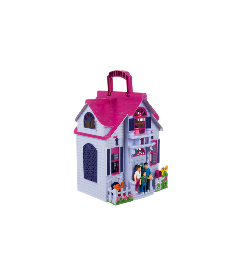 Kolorowa willa dla lalek, która rozkłada się jak walizeczka i od razu zaprasza do zabawy. Idealna dla małych fanek i fanów odgrywania ról. W komplecie są figurki rodziny, piesek i zestaw mebelków, więc po otwarciu od razu można urządzać wnętrza i tworzyć własne historie. Solidne tworzywo oraz bezpieczne krawędzie dają spokój rodzicom, a dzieciom długie godziny kreatywnej zabawy.