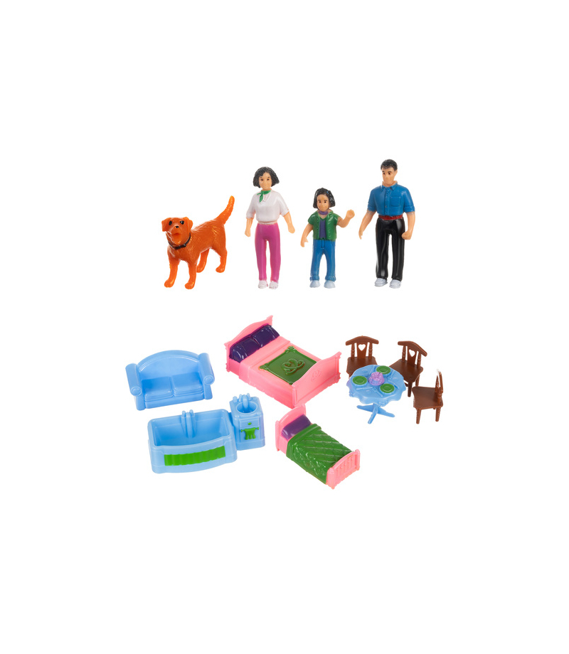 - Zestaw gotowy do zabawy - w komplecie figurki (mama, tata, dziecko), pies i mebelki; nie trzeba nic dokupować.