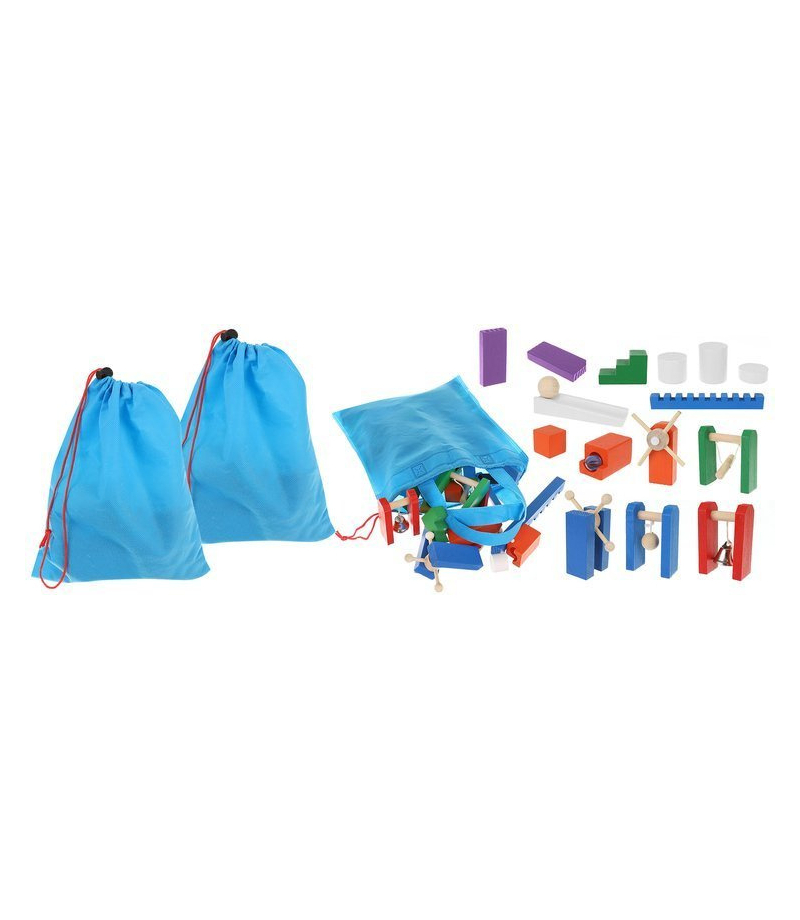 DREWNIANE DOMINO KULODROM - 1131 ELEMENTÓW 1131 ELEMENTÓW – w zestawie znajduje się 1080 klocków o 12 kolorach (brązowy, czarny, 2 odcienie niebieskiego, pomarańczowy, czerwony, różowy, zielony, żółty, fioletowy oraz biały), 45 dodatkowych elementów w różnych kształtach oraz 3 piłki. Do zestawu dołączono również 3 torby ze ściągaczem umożliwiające przechowywanie oraz przenoszenie zestawu. WSPOMAGA ROZWÓJ – klocki to przede wszystkim piękne, żywe kolory, które stymulują wyobraźnię...