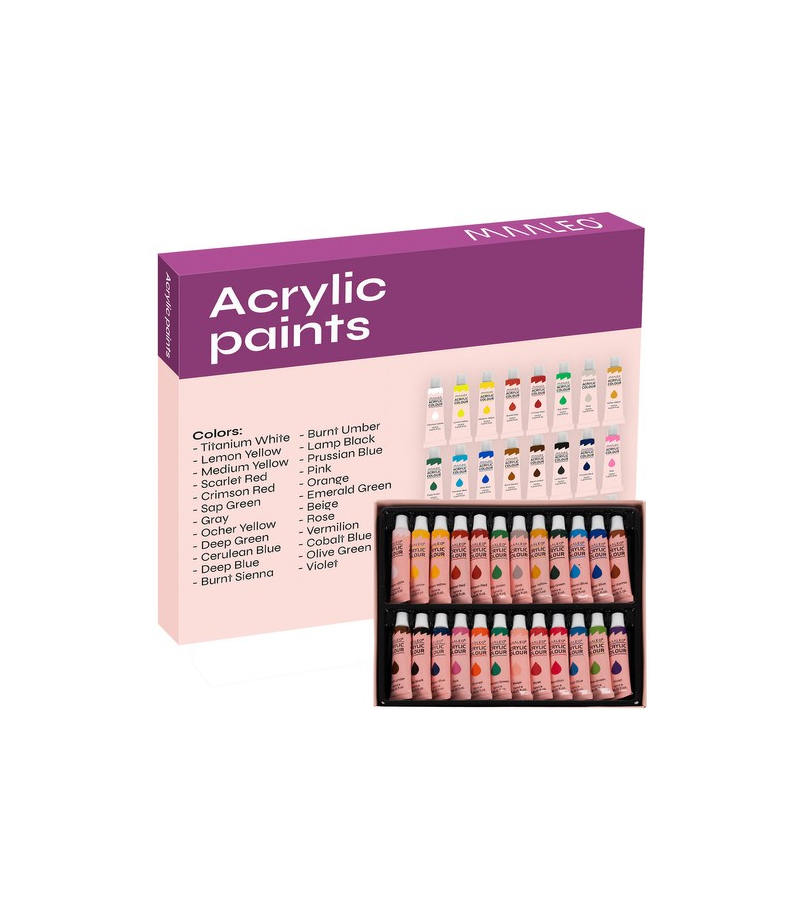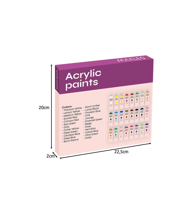 FARBY AKRYLOWE 24 KOLORY po 12 ml PIĘKNE KOLORY - zestaw zawiera aż 24 różne unikalne wyraziste kolory, które można wygodnie mieszać, zapewniając sobie piękną paletę barw. UNIWERSALNE ZASTOSOWANIE - farby świetnie sprawdzą się dla profesjonalnego artysty, hobbysty czy dziecka . Można malować nimi na rozmaitych powierzchniach. Dzięki zakręcanej tubce są wygodne w nakładaniu. BEZPIECZNE - farby są bezzapachowe i nietoksyczne. Można bez obaw malować nimi w domu. Są również...