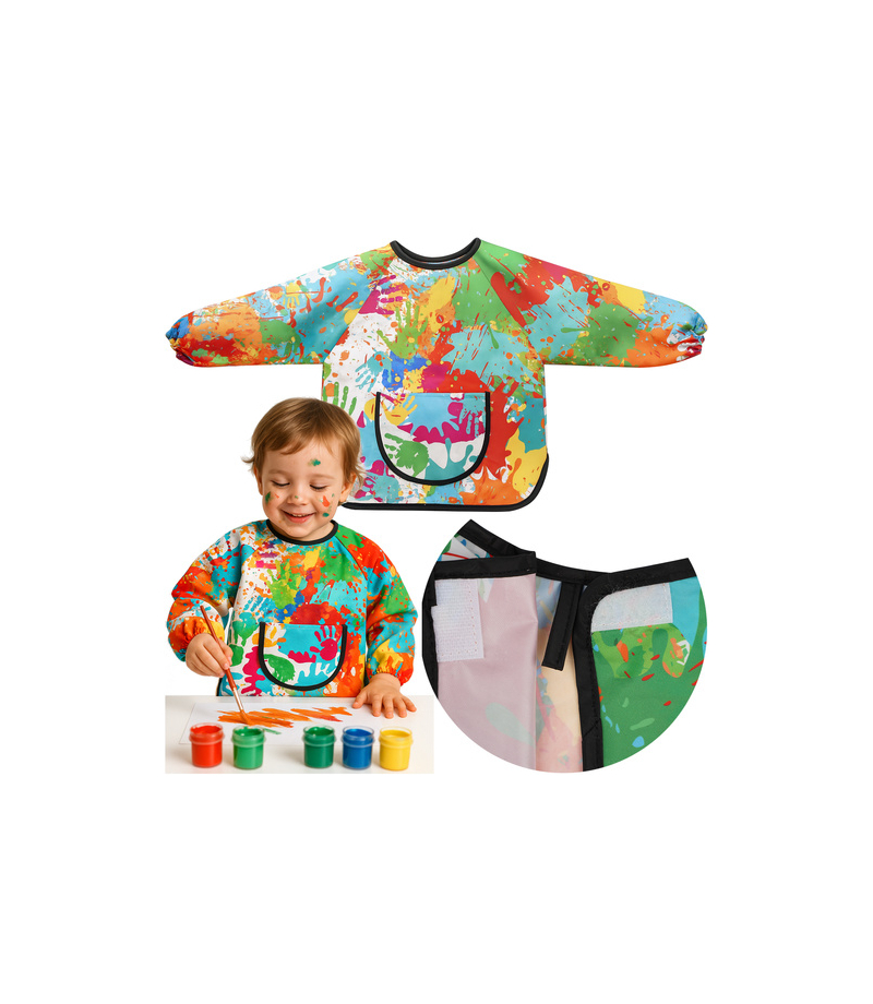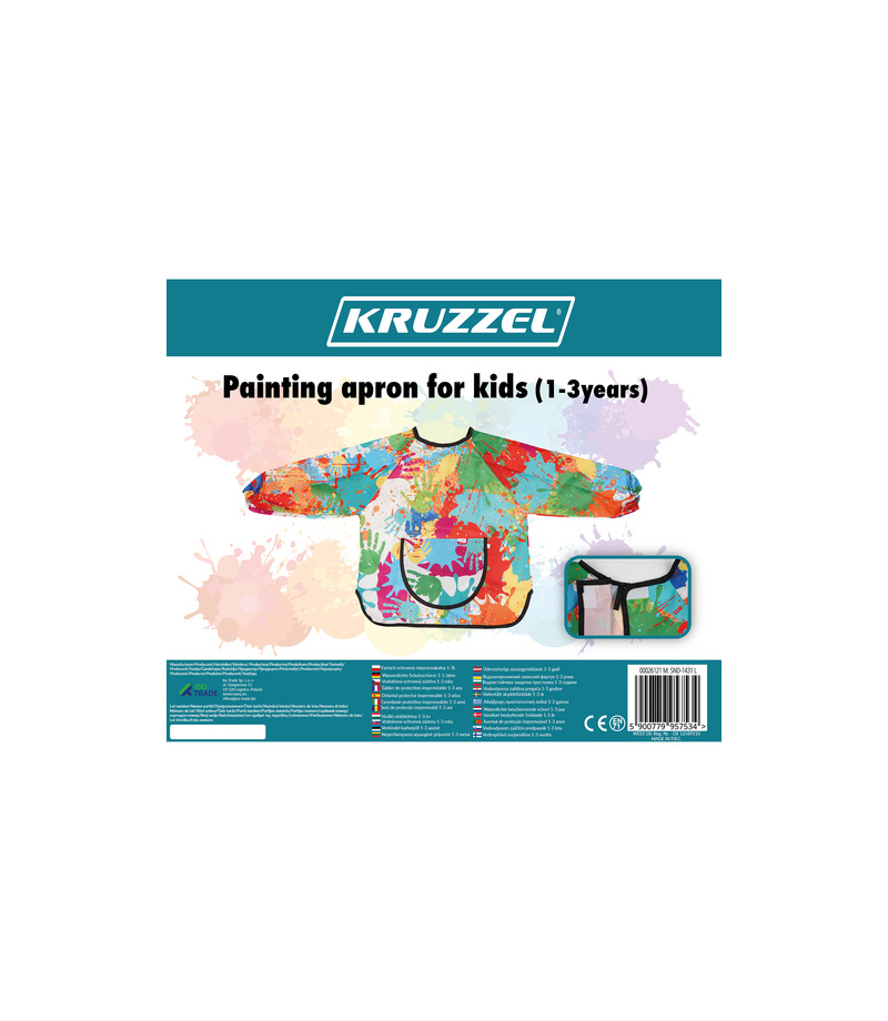 Fartuszek do malowania dla dzieci ochronny fartuch kuchenny dla dziecka 1-3 lata KRUZZEL! - skutecznie chroni ubrania - f artuch do malowania dla dzieci wykonany jest z wodoodpornego materiału, który zabezpiecza odzież przed farbą, klejem i tuszem , długie rękawy i luźny krój zapewniają pełne pokrycie – idealny na zajęcia w przedszkolu i domu - łatwy do czyszczenia -...
