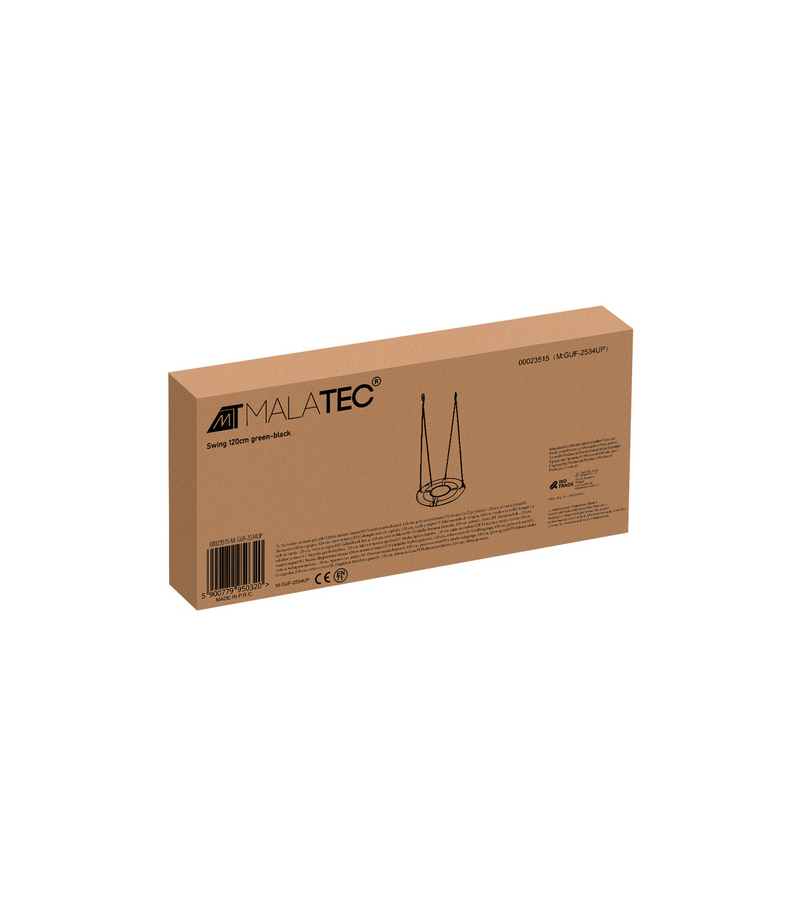 SPECYFIKACJA - kolor: zielono-czarny; tkanina: oxford 600D (odporna na warunki atmosferyczne); stelaż: żelazo + EPE; siatka: PP - polipropylen; maksymalne obciążenie: 150kg; wymiary: 4,5 x 120 x 170 cm; grubość lin: 10 mm; waga huśtawki: 4,05 kg; waga z opakowaniem: 4,85 kg.