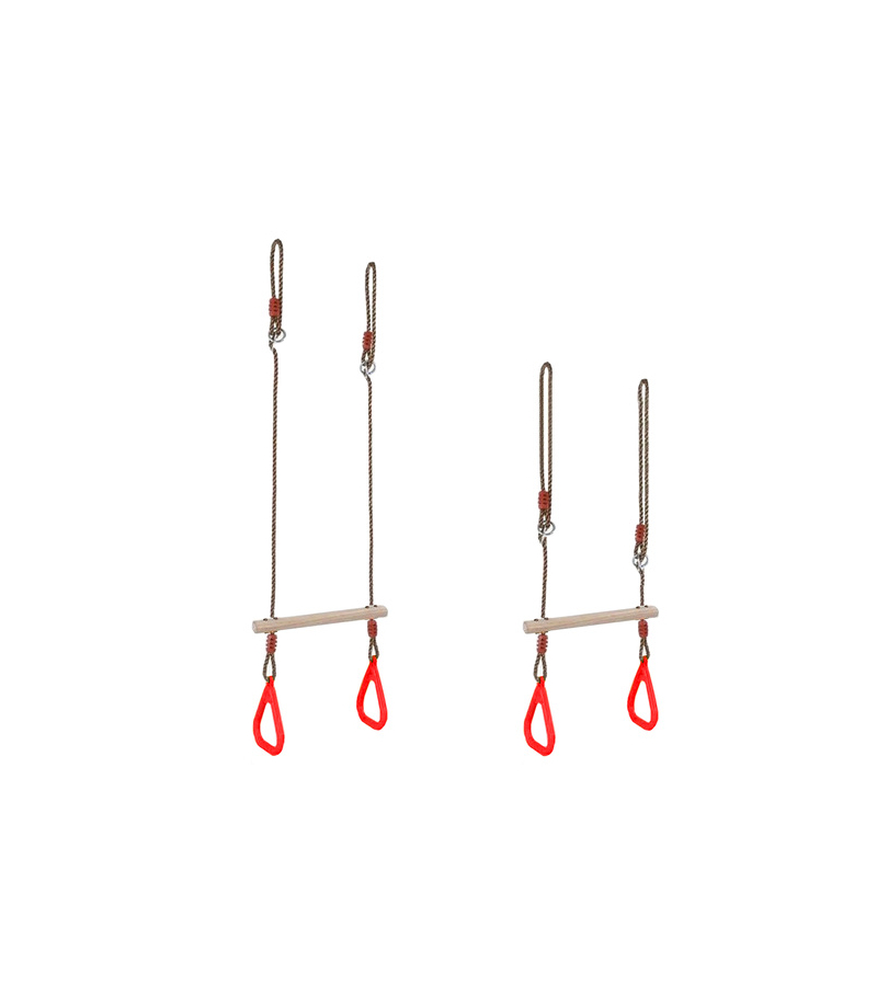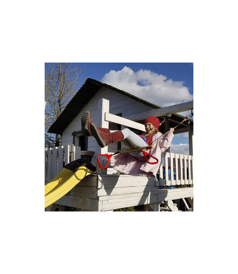 regulowana wysokość – trapez posiada możliwość regulacji długości lin, dzięki czemu łatwo dopasujesz go do wzrostu dziecka oraz miejsca montażu, sprawdzi się zarówno w ogrodzie, na placu zabaw, w domu, jak i na tarasie