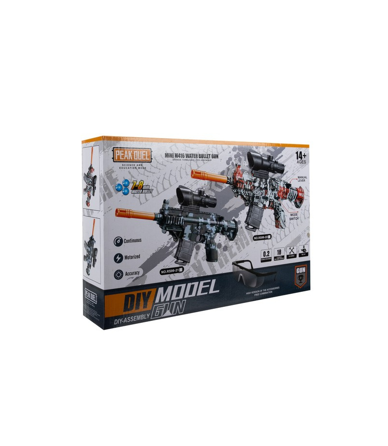 KARABIN NA KULKI ŻELOWE STRZELA SERIĄ LUB POJEDYNCZYMI KULAMI - po przytrzymaniu spustu, karabin strzela serią. Po zmianie wajchy możesz również strzelać pojedynczymi kulkami. NA KULKI ŻELOWE - do zestawu dołączono kulki wodne (żelowe) do samodzielnego przygotowania. Wystarczy wsypać je do pojemnika, zalać wodą, odstawić na 3 godziny i kulki są gotowe do użycia. Zasięg to około 15 metrów . MAGAZYNEK – pistolet wyposażony jest w przeźroczysty magazynek na kulki, dzięki tej opcji...