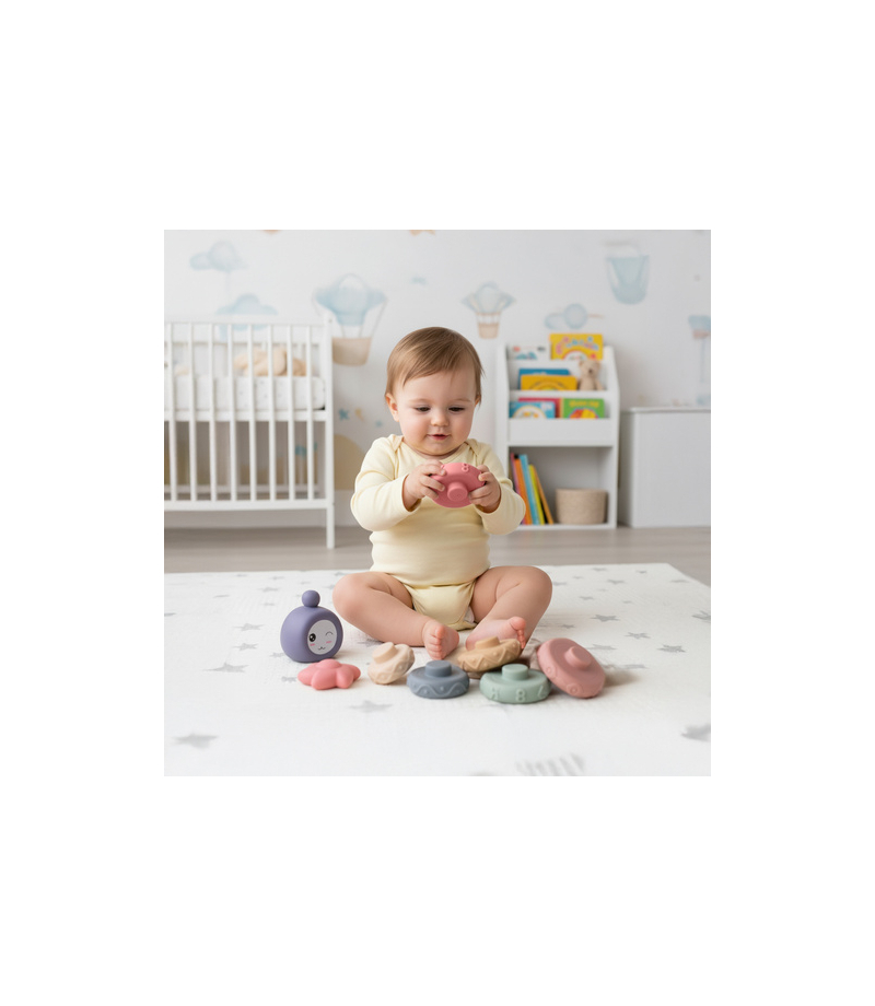 odpowiednie dla najmłodszych dzieci - miękkie klocki gumowe są zaprojektowane specjalnie z myślą o niemowlętach powyżej 6 miesiąca życia, dzięki ich miękkości i zaokrąglonym krawędziom, doskonale nadają się do pierwszych zabaw sensorycznych