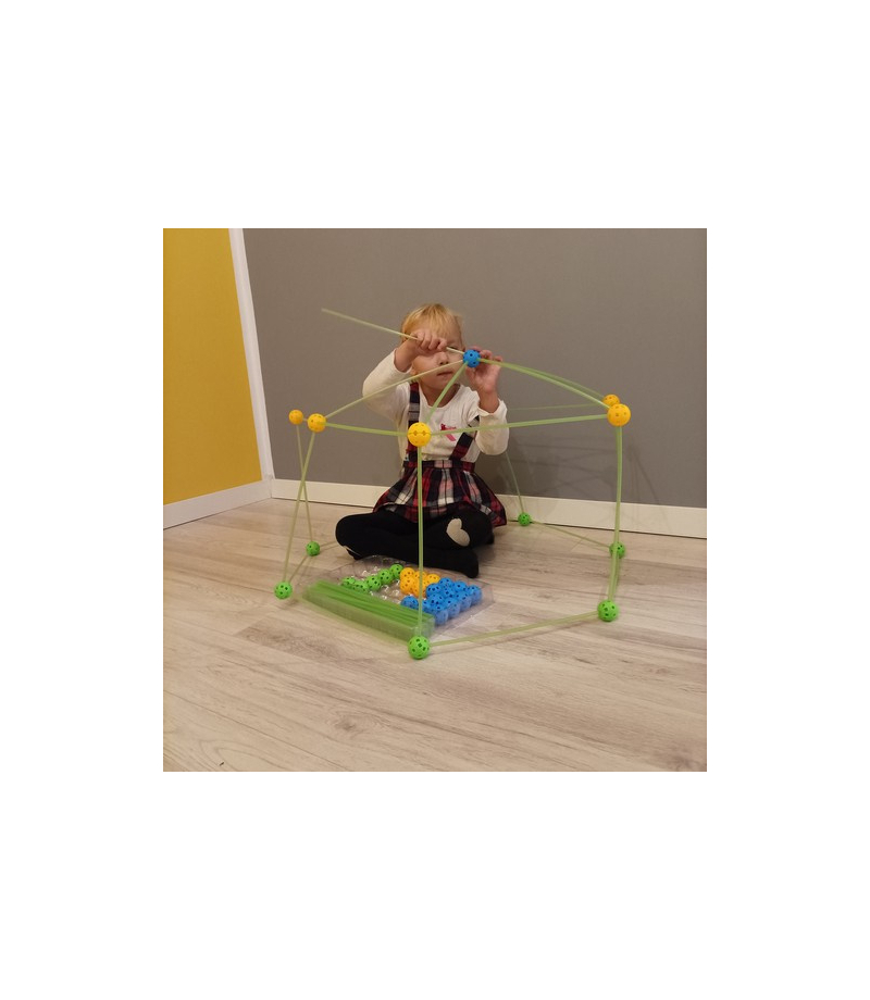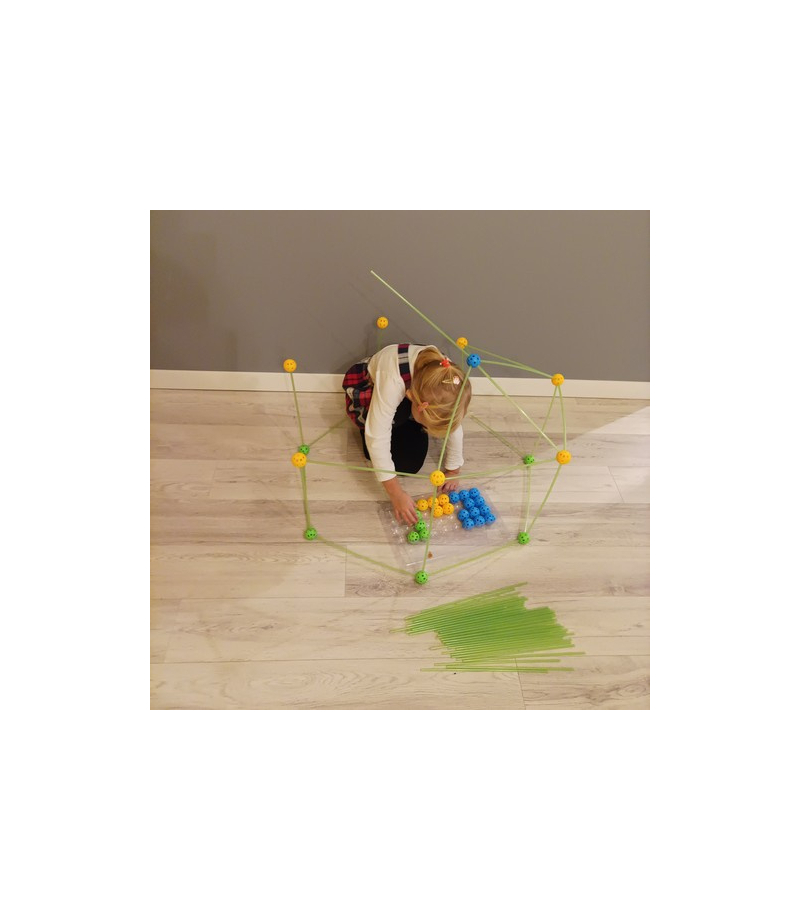 FLUORESCENCYJNE KLOCKI SŁOMKI KONSTRUKCYJNE + NAMIOT / BAZA AŻ 101 ELEMENTÓW! – komplet zawiera 64 fluorescencyjnych słomek oraz 36 łączników w kształcie piłeczek wykonanych w 3 kolorach (zielony, pomarańczowy i niebieski) oraz zielone nakrycie / namiot. P ozwala na realizację niemal niezliczonej liczby projektów. Cały zestaw jest spakowany w karton z plastikowym wkładem, który posiada przegródki, pozwoli to na porządek podczas przechowywania, a także przenoszenia zestawu. 2 w...