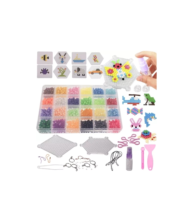KORALIKI WODNE + SZABLONY + WZORY + 2800 KORALIKÓW POTĘŻNY ZESTAW 28 00 KORALIKÓW - w zestawie znajduje się 24 różnych kolorów koralików: brązowy, 3 odcienie żółtego, 2 odcienie różowego, 3 odcienie niebieskiego, 3 odcienie fioletowego, 4 odcienie pomarańczowego, 4 odcienie zielonego, czerwony, czarny, szary, biały. Jeden zestaw to aż 28 00szt koralików co pozwala na wykonanie wszystkiego o czym tylko zamarzy dziecko . WZORY + SZABLONY - w pudełku znajduje się kompletny zestaw...
