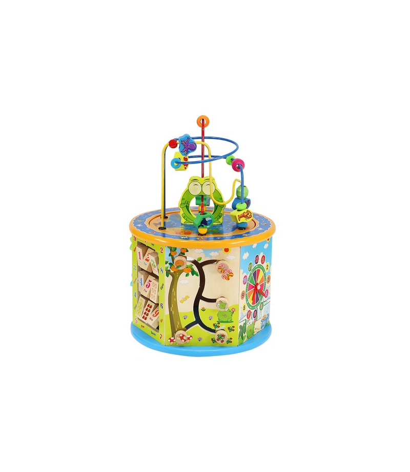 Rozwijająca zabawka, którą pokocha każdy maluszek. Drewniana kostka edukacyjna to nie tylko wiele godzin wesołej zabawy, ale również nauka, która z pewnością zaprocentuje w przyszłości. Interaktywna kostka drewniana jest bardzo kolorowa – żywa kolorystyka pobudza wyobraźnię najmłodszych i pobudza ich kreatywność. Manipulacje ruchomymi elementami pomagają natomiast najmłodszym ćwiczyć małe paluszki, zdolności manualne i koordynację wzrokowo-ruchową. Edukacyjna kostka interaktywna będzie doskonała zarówno do samodzielnej zabawy, jak i do wspólnej zabawy z rodzicami. Z pewnością wypełni czas dziecka i sprawi, że nuda zniknie.