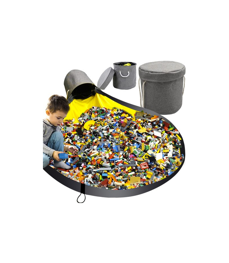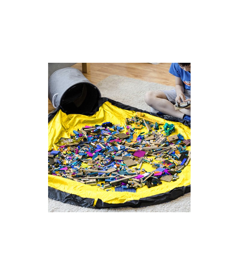 Praktyczny kosz do przechowywania klocków i innych zabawek z matą do zabawy. Dzięki niemu w kilka chwila stworzysz miejsce do zabawy dla malucha na macie, która chroni podłogę przez zarysowaniem oraz zabawki przed zgubieniem.