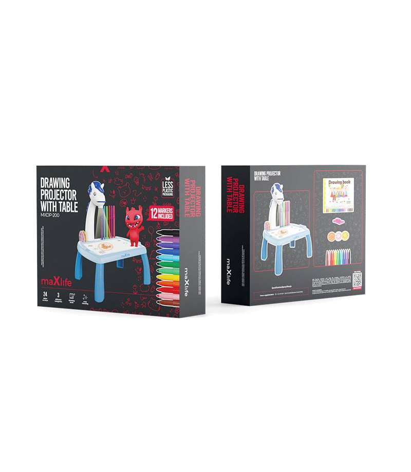 Maxlife projektor ze stołem do rysowania MXDP-200 niebieski LAMEX LXOEM0200585 Odkryj kreatywną zabawę z Magicznym Stolikiem! To innowacyjne urządzenie z 24 slajdami, regulowanym projektorem i kolorowymi flamastrami rozwija umiejętności artystyczne i motoryczne dziecka. Łatwy w obsłudze, przenośny i edukacyjny - doskonały prezent dla małych dzieci! Zachęć dziecko do twórczej zabawy z 24 różnorodnymi slajdami, które inspirują do rysowania i malowania. Pozwala...