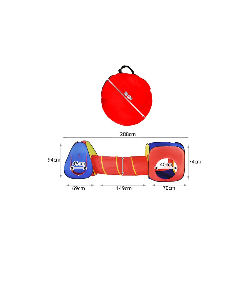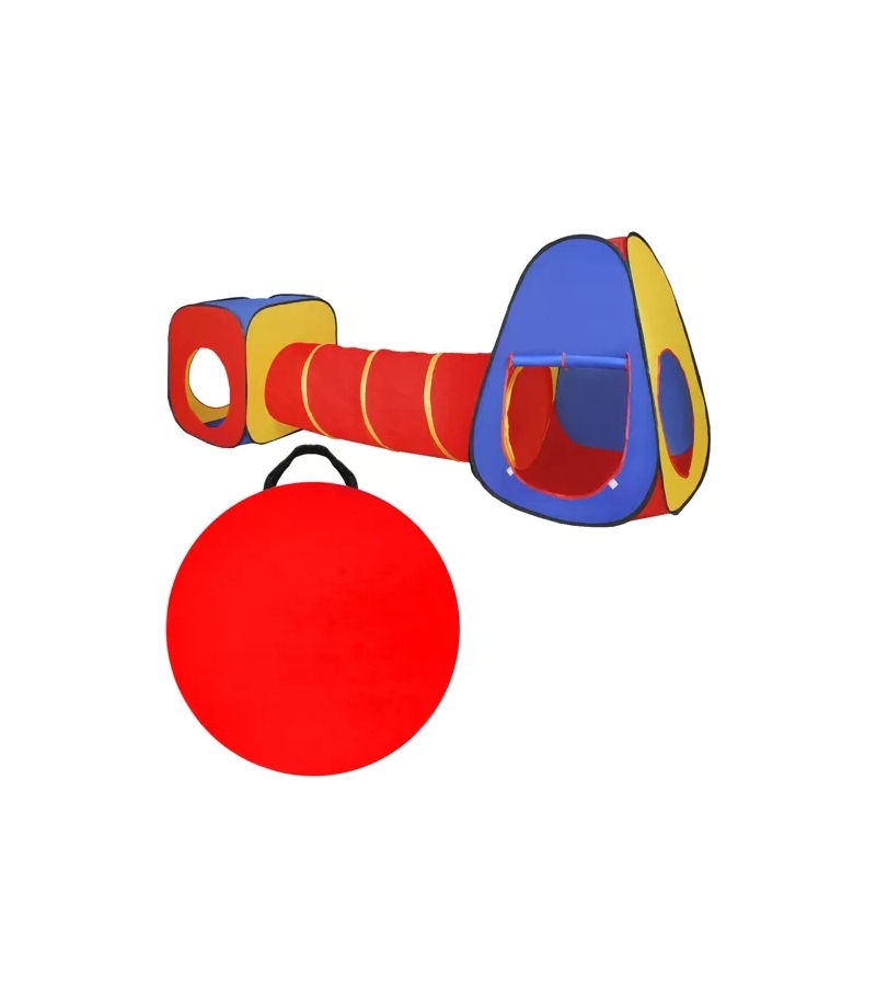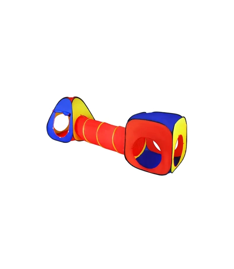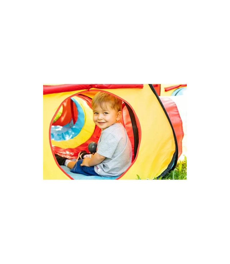 Namiot dla dzieci to nie tylko miejsce do zabawy, ale także przedmiot intensywnie rozwijający ich wyobraźnię, dający poczucie bezpieczeństwa i wzmagający aktywność fizyczną, zarówno w domu, jak i na dworze. Rozkładany domek materiałowy to super zabawa dla najmłodszych! Dwa namioty połączone ze sobą elastycznym tunelem zagwarantują świetną zabawę dla każdego małego odkrywcy. Namiot stożkowy otwierany jest z przodu i połączony tunelem z namiotem w kształcie kostki z 3 osobnymi wyjściami. Dzięki temu, posiadając kilka zestawów, można dowolnie konfigurować elementy i stworzyć niesamowity labirynt.