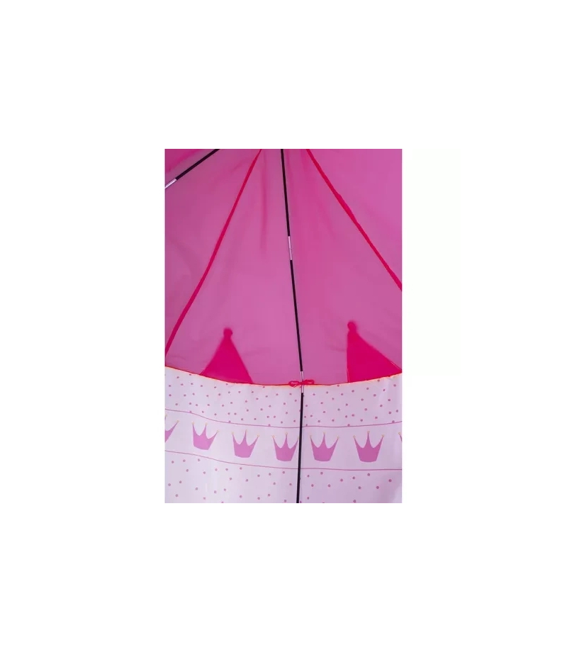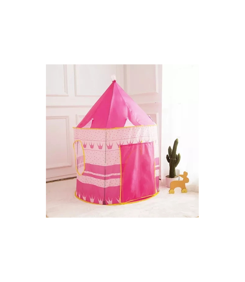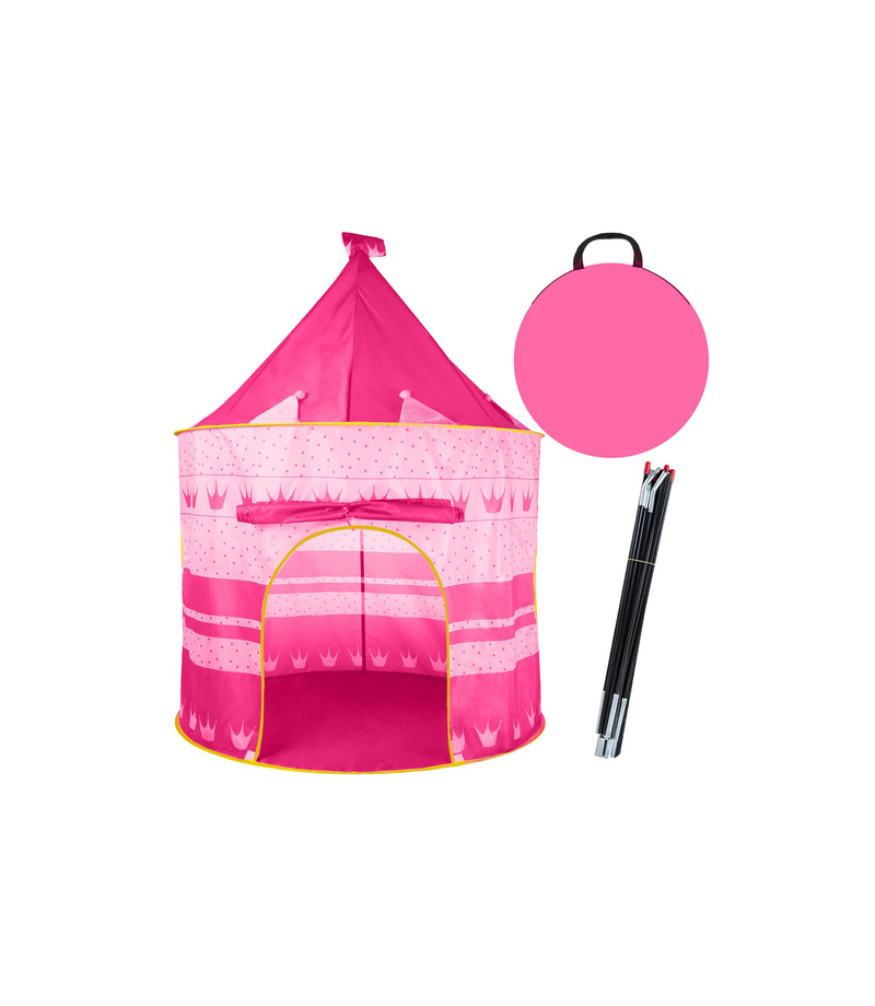 Namiot dla dzieci to wyśmienita zabawa przez długie godziny. Materiałowy domek dla dzieci w kształcie czarodziejskiego zamku to wymarzony prezent dla każdego dziecka. Pałac dla dzieci posiada dwa okienka z drobnej siateczki oraz odpinane na rzepy wejście. Można się w nim schować z ulubionymi zabawkami i puścić wodze fantazji. Namiot dla dzieci będzie idealnym miejscem do pełnej emocji i wyobraźni zabawy zarówno w domu, jak i na świeżym powietrzu – np. w ogrodzie, na pikniku, na tarasie czy na plaży.
