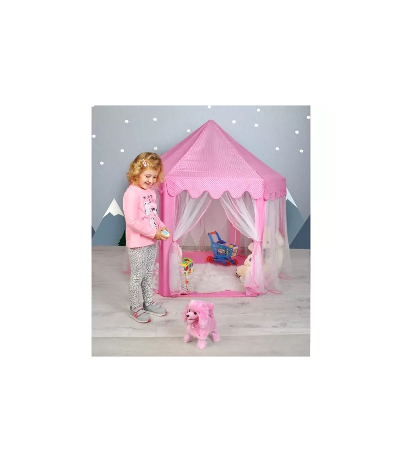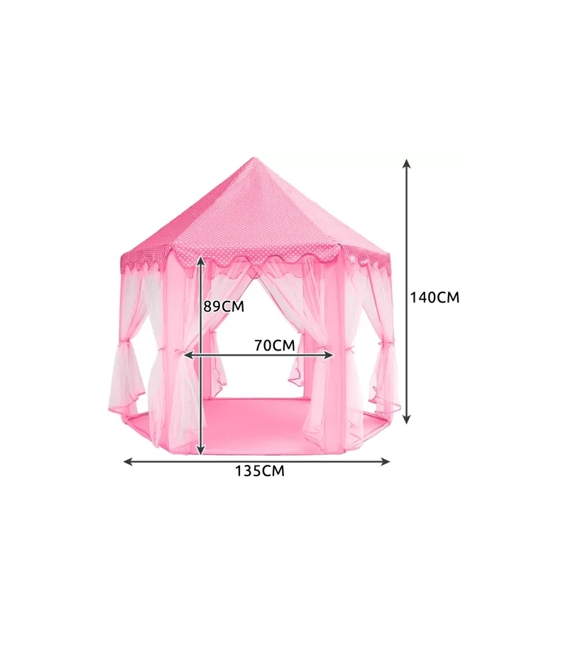 NAMIOT RÓŻOWY PAŁAC DLA DZIECI DO DOMU I OGRODU DUŻY – rozmiar domku pozwala na przebywanie w nim jednocześnie kilkorga dzieci lub na umieszczenie w środku wielu maskotek, poduszek czy innych akcesoriów zapewniając jednocześnie komfort i świetną zabawę. ATRAKCYJNY WYGLĄD – namiot jest ciekawy wizualnie. Ma podstawę sześciokąta, posiada 6 otworów wejściowych i daszek w kształcie ostrosłupa. Zabawka charakteryzuje się atrakcyjnym wyglądem, a kolor poszycia nadaje walorów estetycznych....
