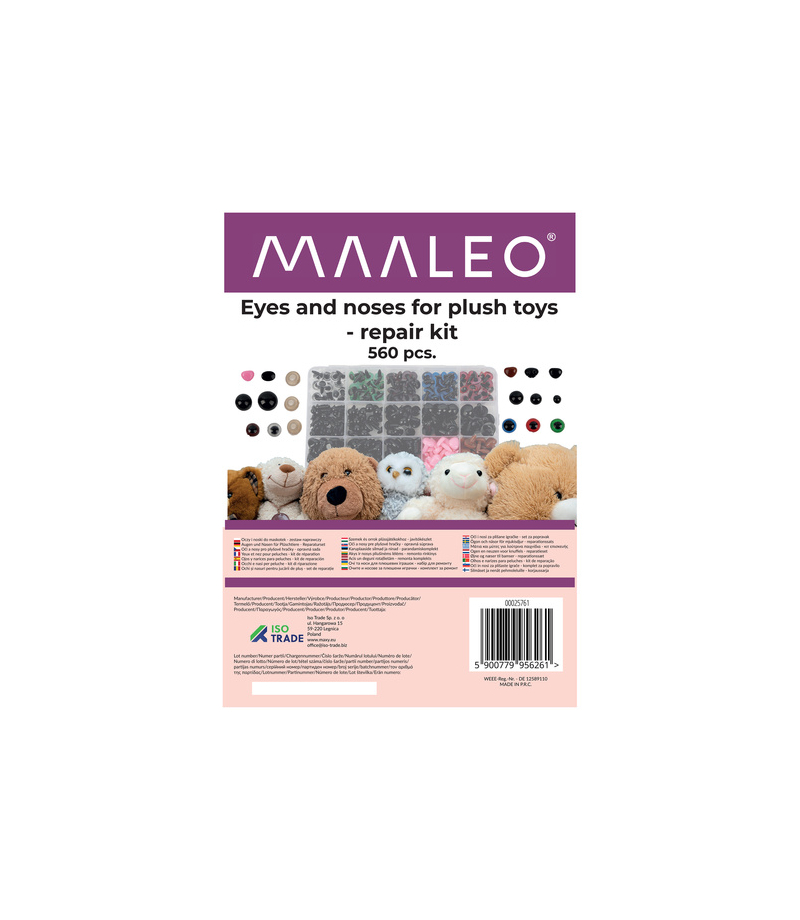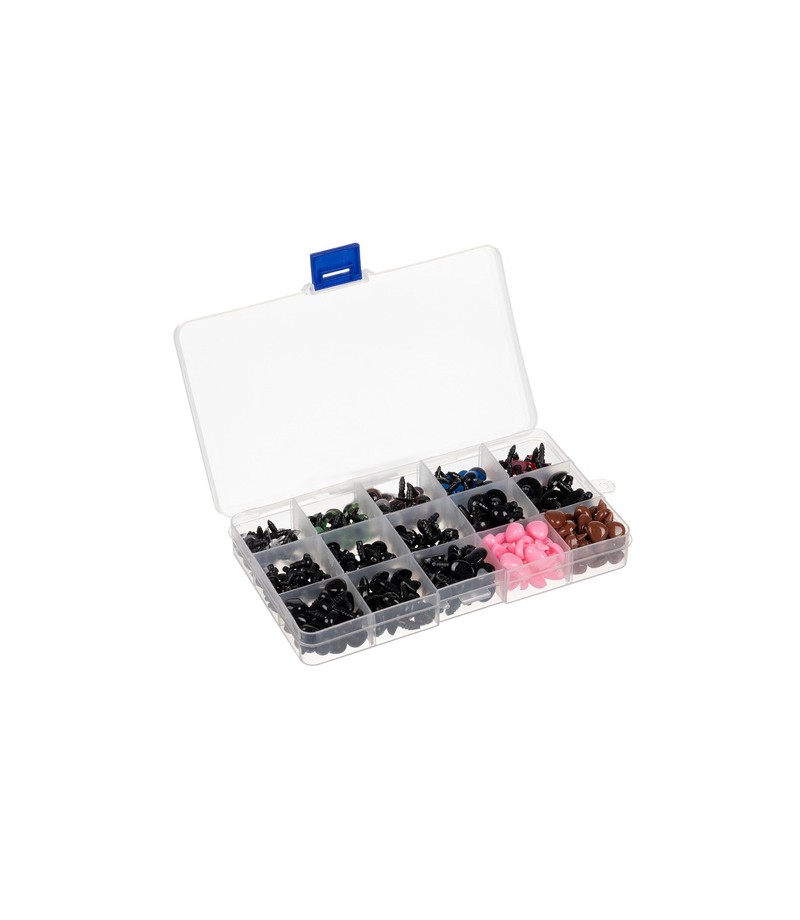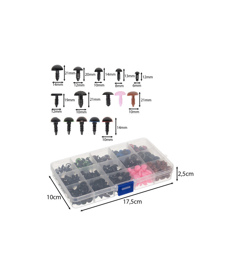 potężny wybór - w zestawie masz aż 560 elementów w różnych rozmiarach, kształtach i kolorach, dzięki czemu z łatwością dopasujesz je do pluszaków, lalek czy projektów hand made