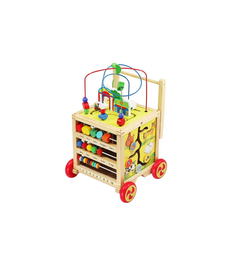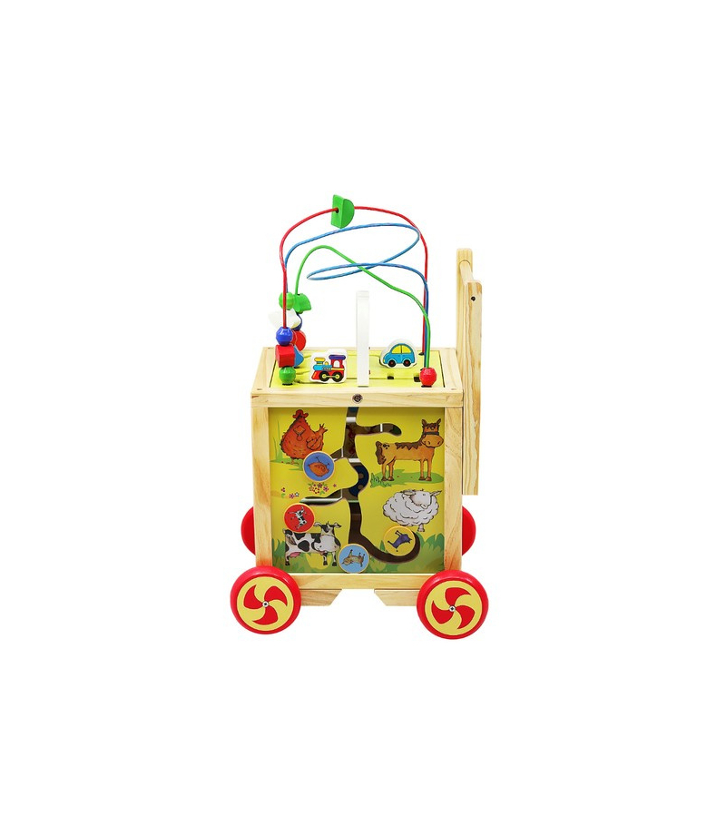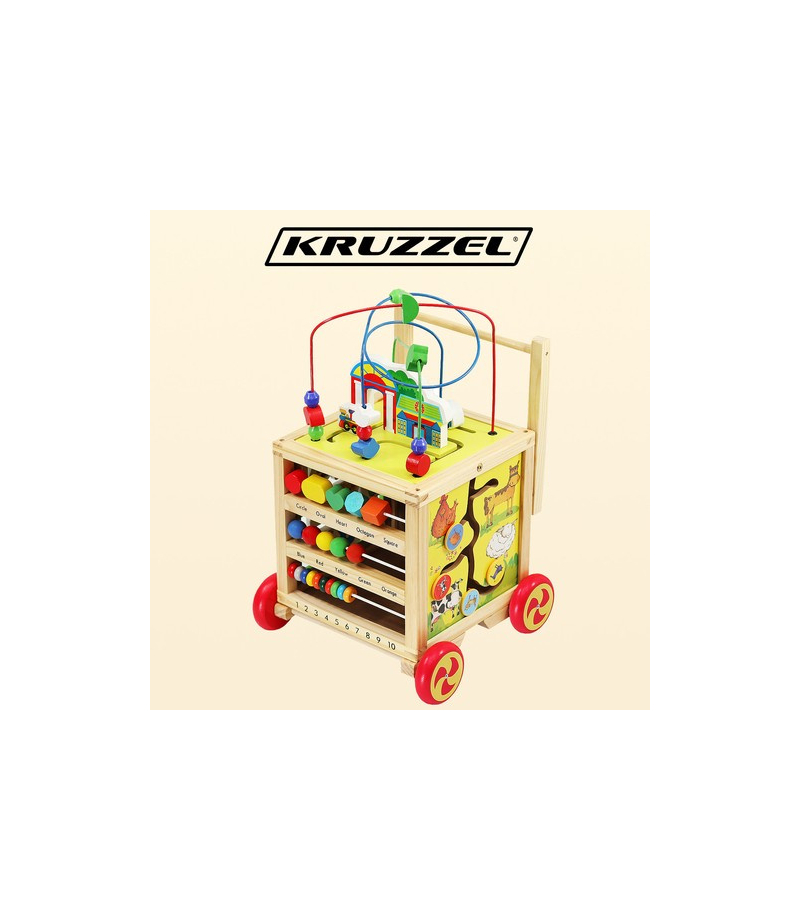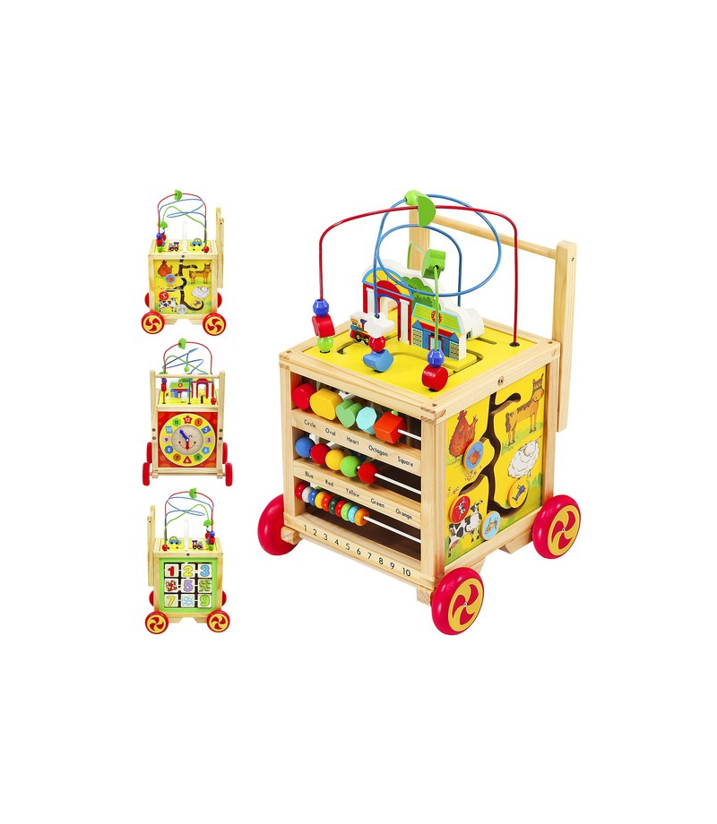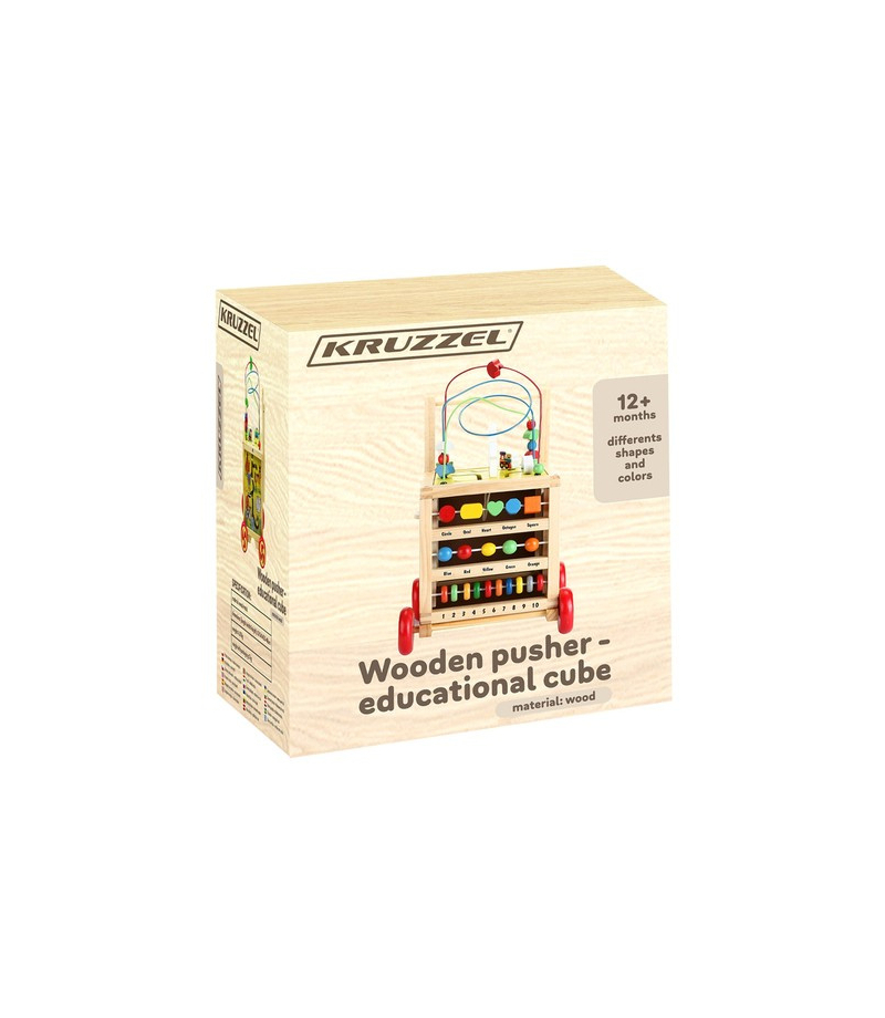 DREWNIANY PCHACZ / KOSTKA EDUKACYJNA DLA DZIECI PCHACZ Z RĄCZKĄ – pchacz ułatwia naukę chodzenia i utrzymywania prawidłowej postawy jednocześnie zachęcając dziecko do stawiania pierwszych kroków. WIELOFUNKCYJNA KOSTKA EDUKACYJNA – z każdej strony umieszczona jest inna kreatywna zabawka wpływająca na rozwój Twojego dziecka. ZDEJMOWANA PĘTLA MOTORYCZNA – na górze kostki znajduje się pętla motoryczna z koralikami, którą można ściągnąć i bawić się nią osobno....