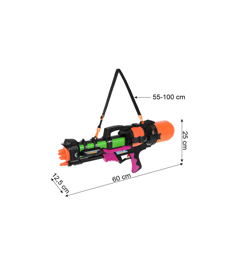 Szukasz zabawki na lato, która nie kończy się po kilku psiknięciach i daje frajdę całej ekipie Ten duży karabin na wodę 60 cm z pojemnym zbiornikiem 1,25 l zapewnia dłuższą zabawę, wygodny chwyt i zasięg ok. 6 m, dzięki czemu wodna bitwa jest jeszcze bardziej emocjonująca .