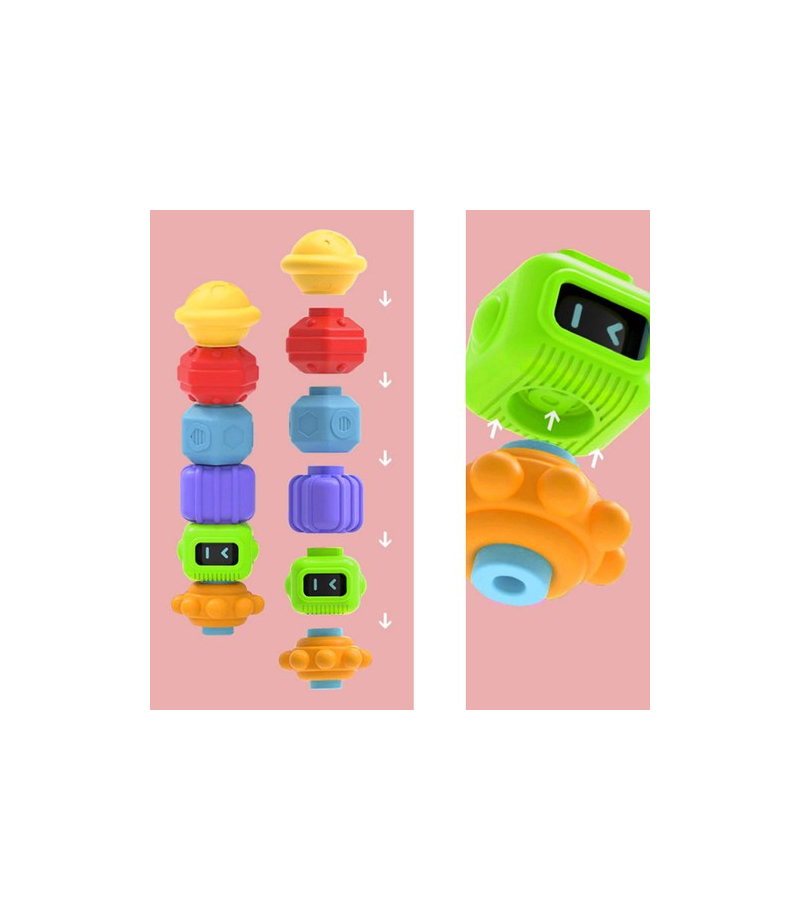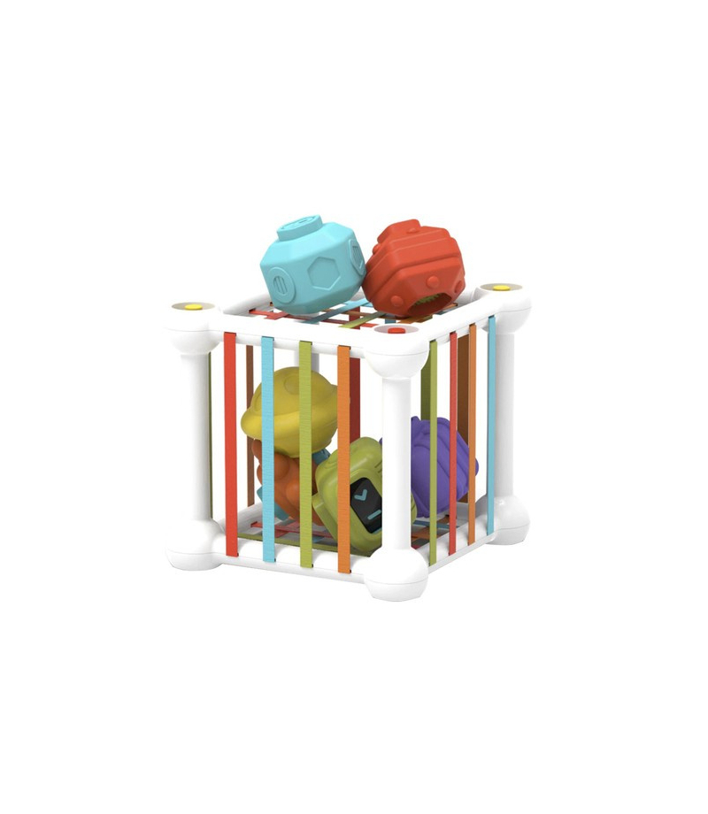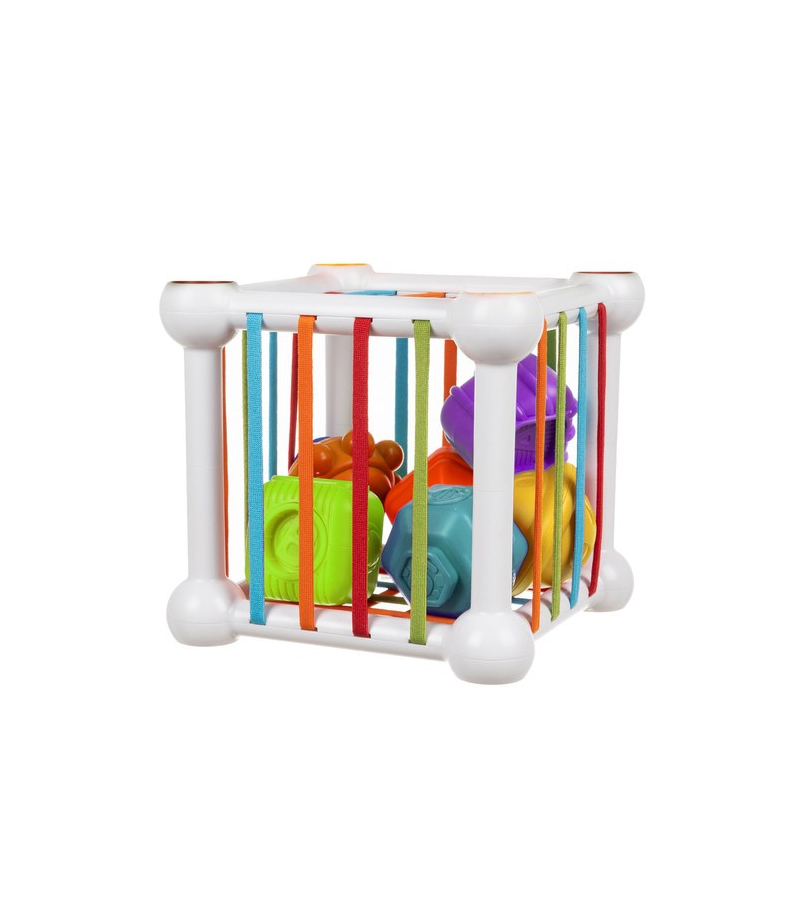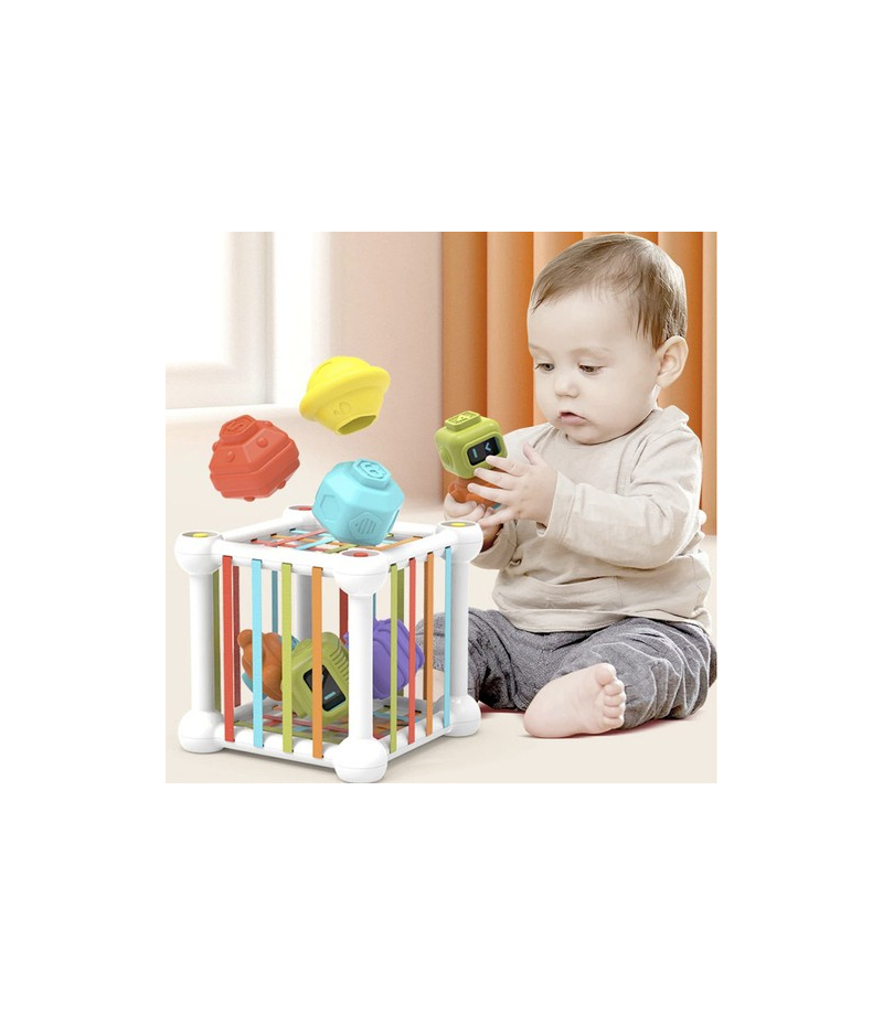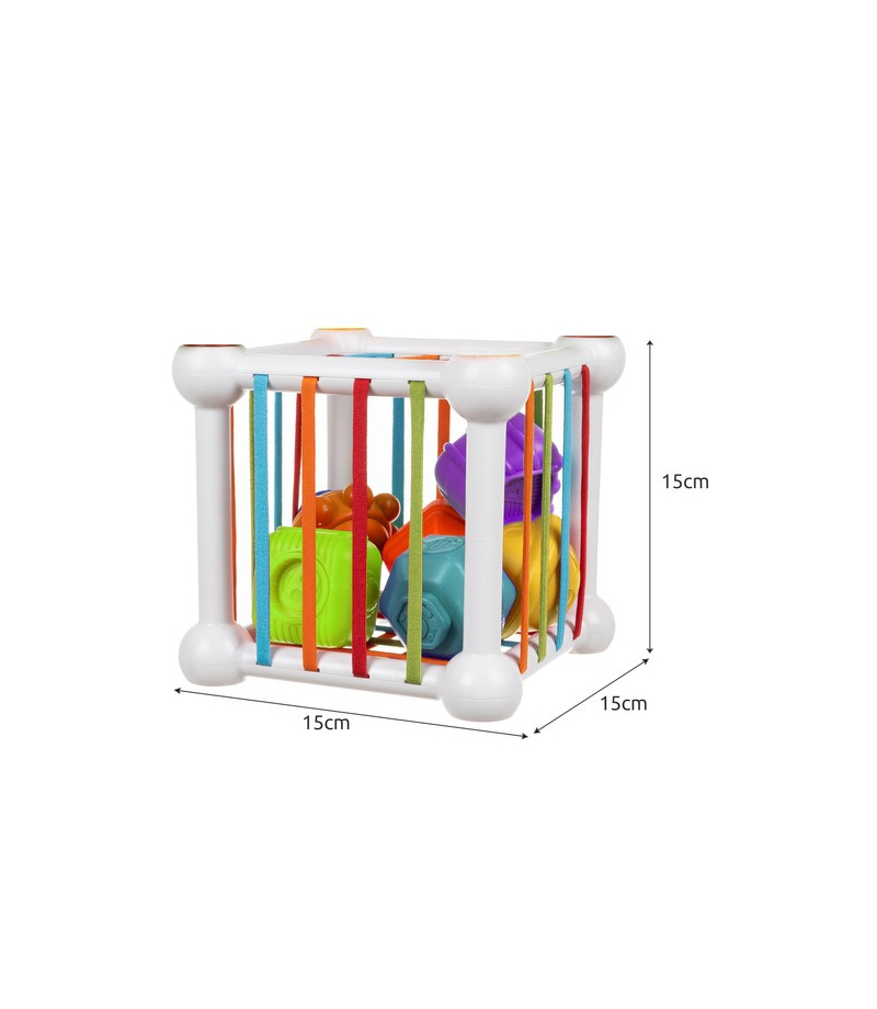 ELASTYCZNA KOSTKA SENSORYCZNA EDUKACYJNA - pojemnik do sortowania sensorycznego sprawdzi się do nauki przez dziecko wczesnych koncepcji wejścia i wyjścia, myślenia i koncentracji. Dziecko może go potrząsać, używać jak sortera, a także wyjmować klocki. KLOCKI GRZECHOTKI – do sortera zostały dołączone klocki o różniej wielkości, strukturze, kolorze i numerze. Dzięki temu dziecko uczy się poprzez poznawanie. Dodatkowo klocki są jednocześnie grzechotkami. ELASTYCZNE ŚCIANY -...