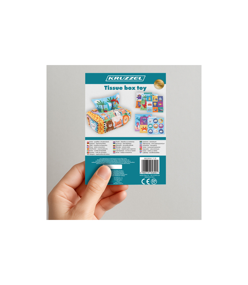 Sorter pudełko z chusteczkami pluszowe Montessori sensoryczne dla dzieci 0+ - nauka poprzez zabawę KRUZZEL! wspiera codzienny rozwój dziecka - sorter w formie materiałowego pudełka z chusteczkami to praktyczna i edukacyjna zabawka , która pomaga najmłodszym rozwijać zdolności manualne, koordynację ręka–oko , a także uczy rozpoznawania kolorów, faktur i sekwencji...