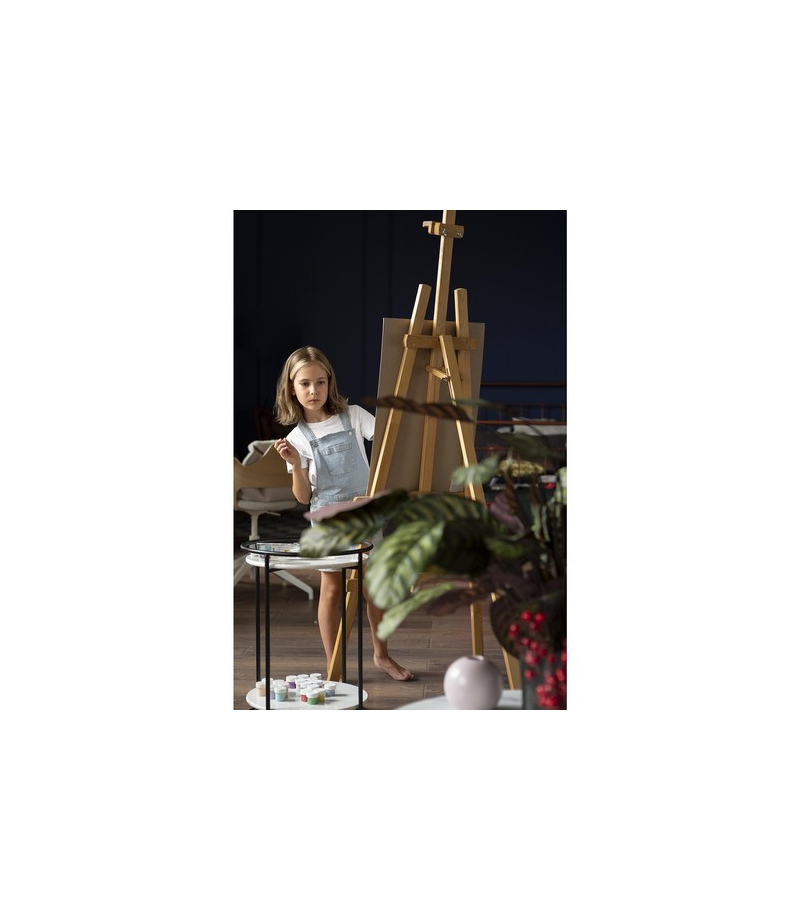 SZTALUGA MALARSKA DREWNIANA DREWNIANA KONSTRUKCJA - sztaluga drewniana jest doskonałym wyborem dla wielu artystów ze względu na swoją trwałość, elastyczność, estetykę i stabilność, zapewniającą solidne podparcie podczas pracy malarskiej. R EGULACJA WYSOKOŚCI - sztaluga drewniana ma możliwość regulacji wysokości postawienia płótna oraz kąta nachylenia, co daje artystom maksymalnie dużą elastyczność w dostosowywaniu ustawienia płótna do swoich potrzeb. M OŻLIWOŚĆ PRZENOSZENIA I...
