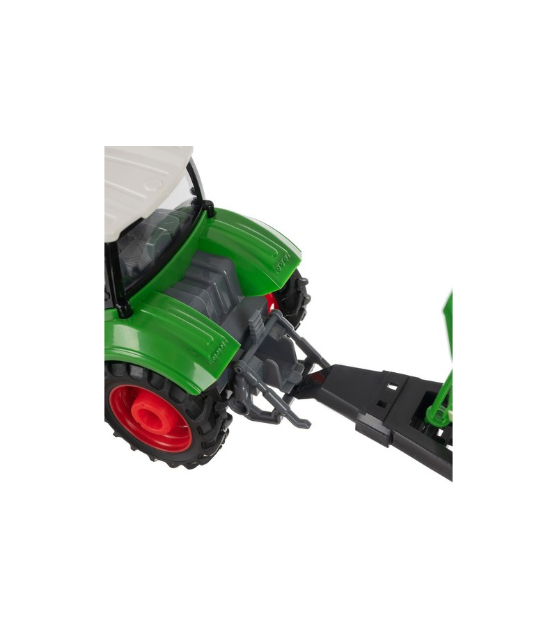 efekty świetlne – traktor posiada reflektory LED oraz dodatkowe światła w kabinie, które włączają się podczas jazdy, nadając zabawie dodatkowego realizmu