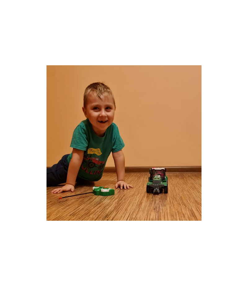 zdalnie sterowany na pilota - umożliwia wygodne kierowanie traktorem, jest intuicyjny i prosty w obsłudze, dziecko może łatwo sterować traktorem