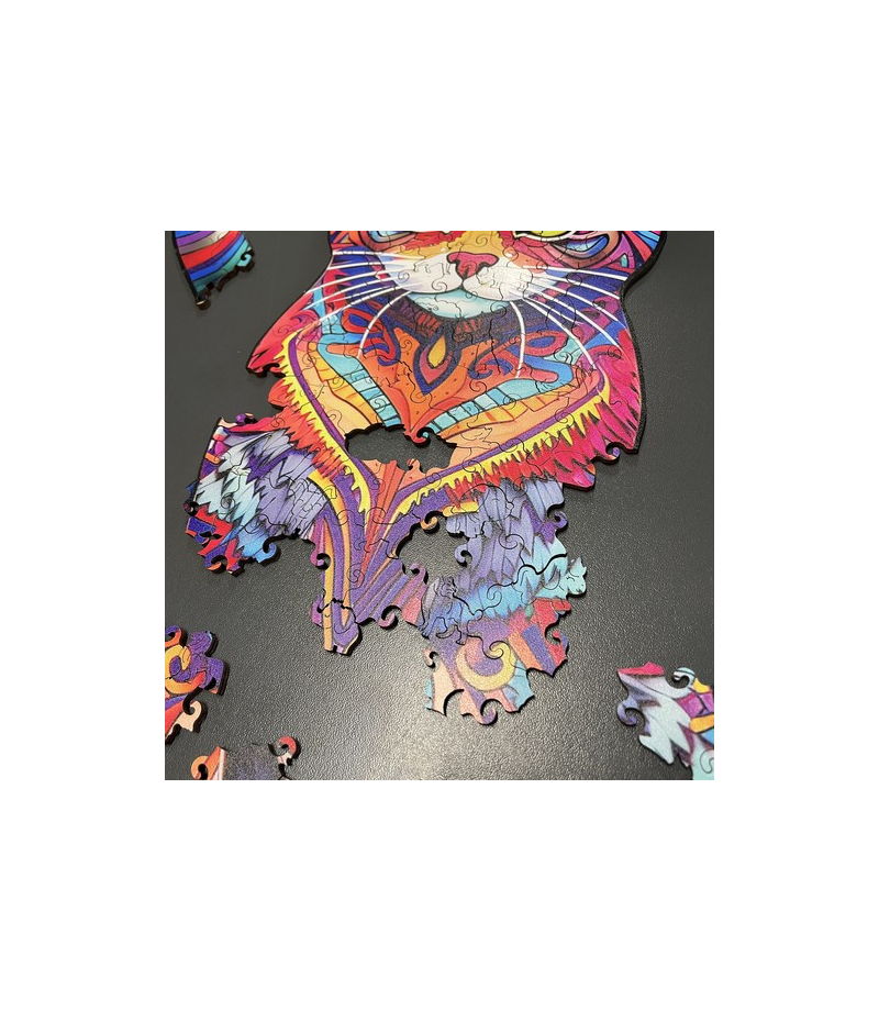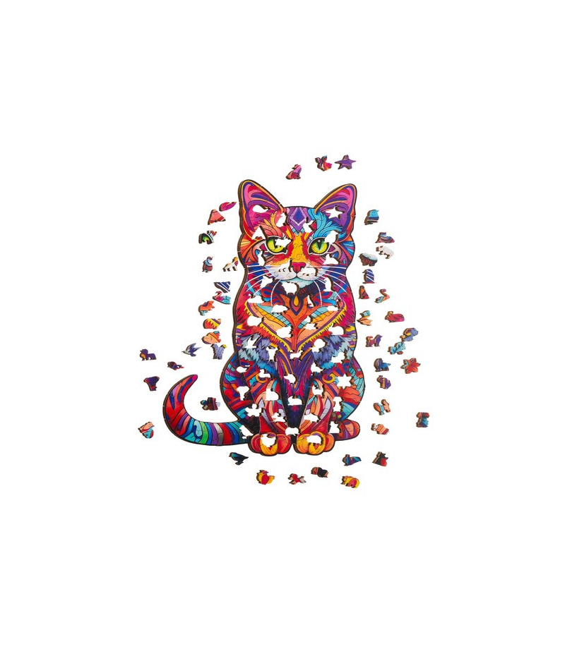 Drewniane puzzle to forma rozrywki polegająca na układaniu kolorowego obrazka o charakterystycznym kształcie kota. Puzzle wykonane są z 3 - 4 mm sklejki i pokryte barwnym obrazem. Drewniane puzzle to znakomity prezent na każdą okazję – prezent na urodziny, imieniny, święta. Obdarowana osoba spędzie kilka godzin układając puzzle, znakomicie się przy tym bawiąc.