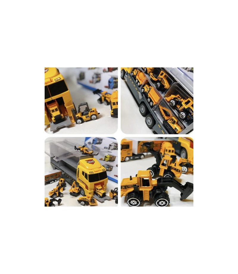 TIR + AUTKA - zestaw składa się z tira - lawety, oraz 6 maszyn budowlanych. Posiada funkcję rozkładania, dzięki której bez problemu można wyjąć samochodziki z lawety. Zabawka wykonana została bardzo dokładnie, odwzorowując wszystkie szczegóły. Wygląda realistycznie, czym zachęca malucha do zabawy.